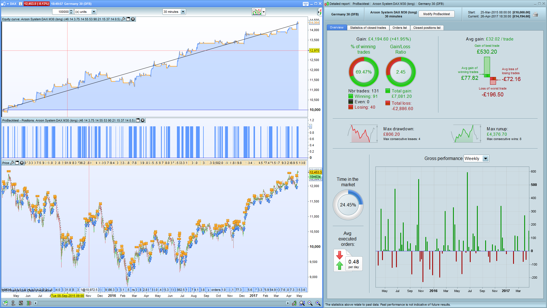 It performs better with a trailing stop as you mentioned. Starting October 2015 it has a positiv result on FTSE100 too (30 min). The trailing stop function is from Nicolas blogpost.