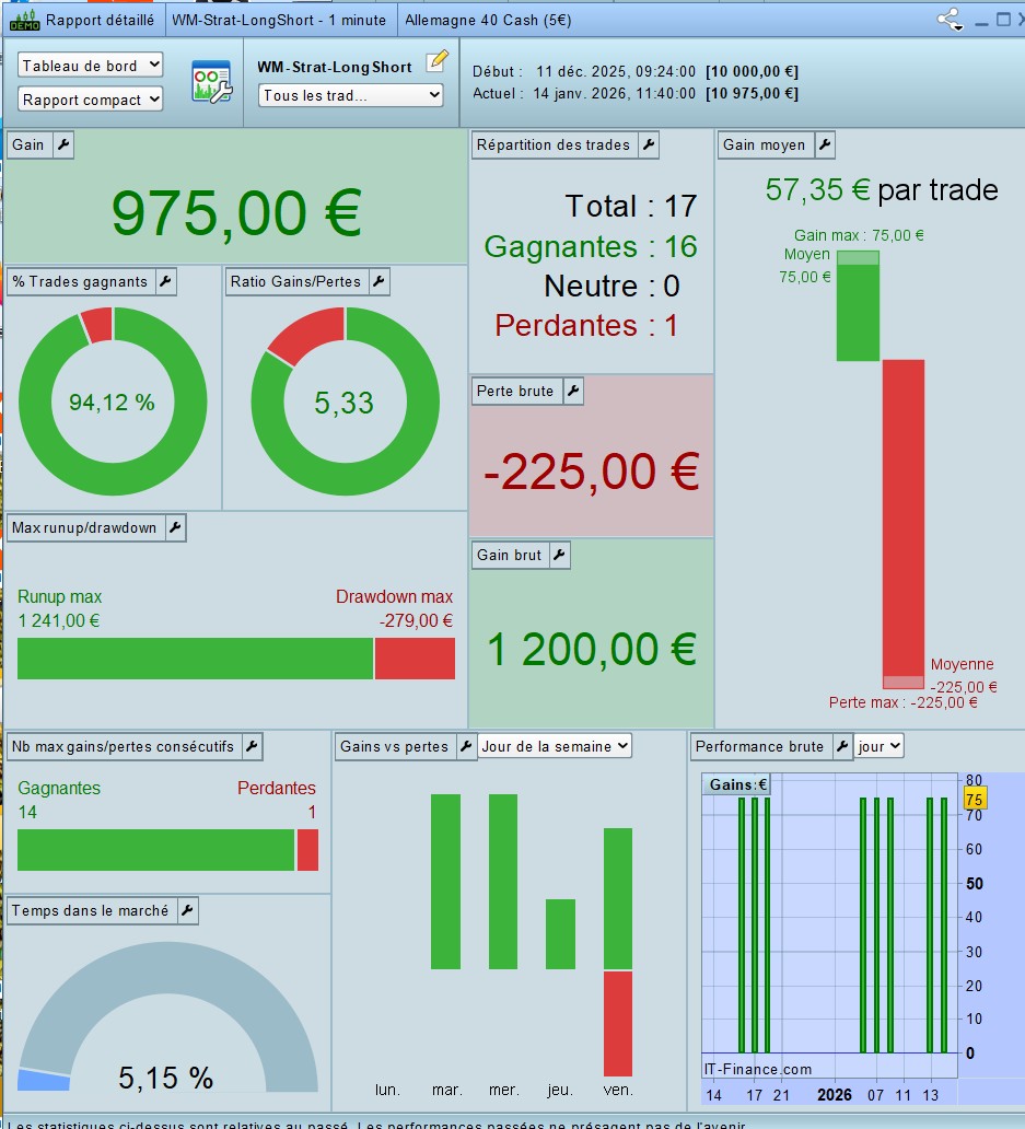 - Execution at 08:00: spreads can be wider at the cash open; if you backtest, set a realistic spread in the ProBacktest settings, otherwise results will be optimistic.
