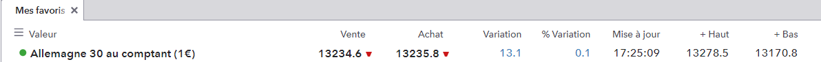 On IG.com, you can read the price of Buy and Sell, i.e. taking into account the Spread, which you can also read on the orders modules of PRT.