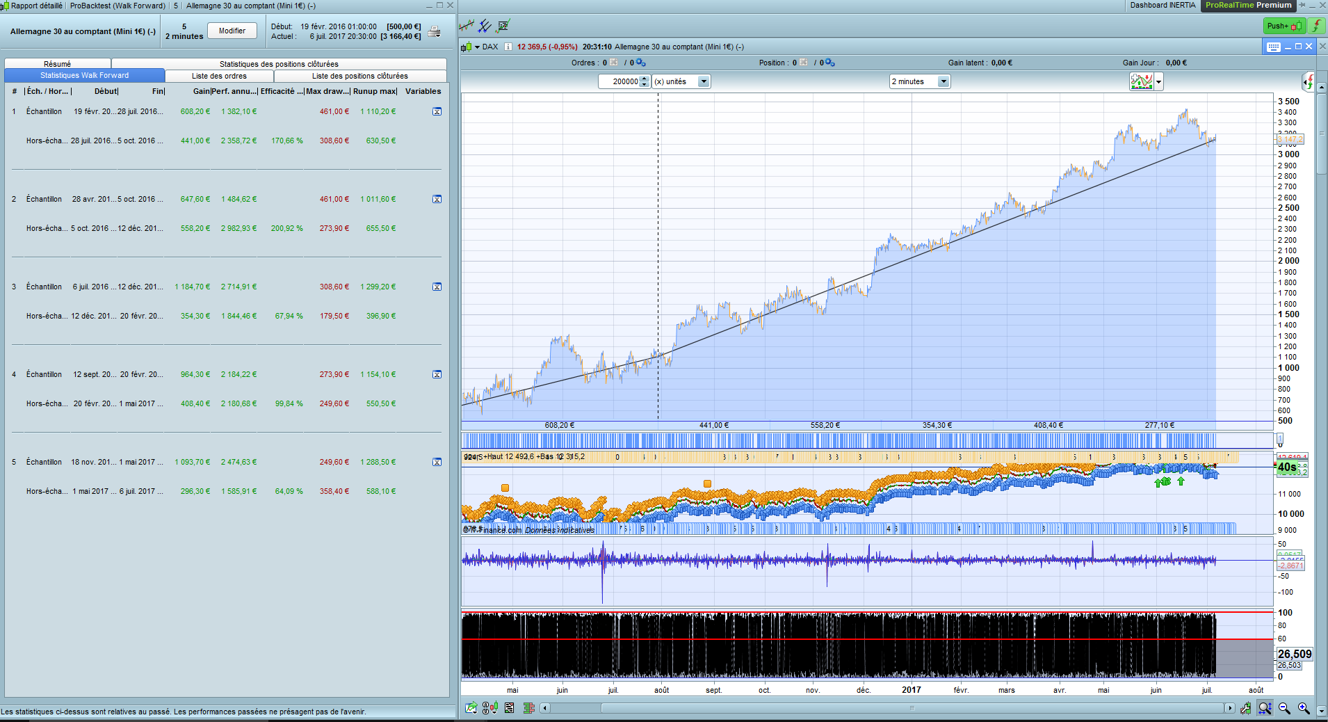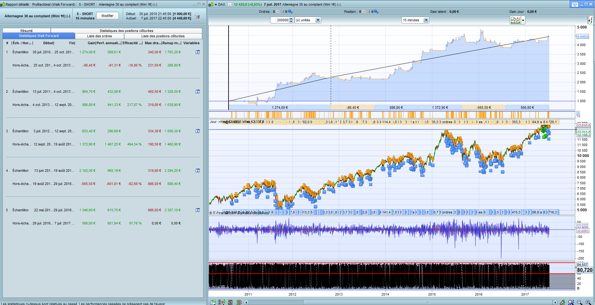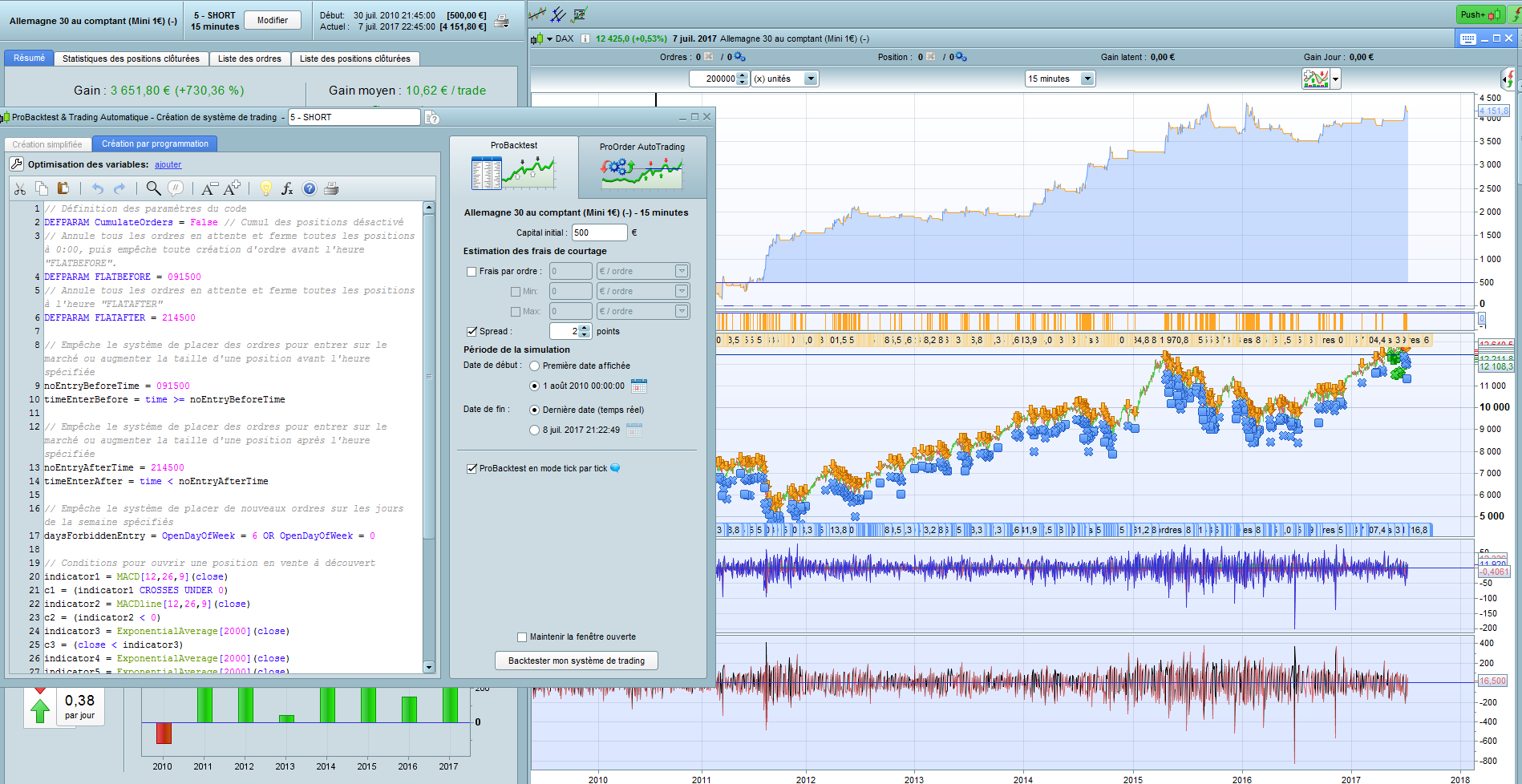 The trade is triggered by the MACD histo / TF – 2mn / Instrument: DAX, 1eur.