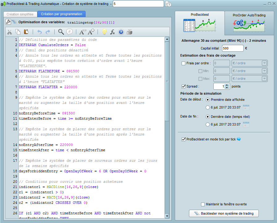 Thank you Nicolas. Yes for the “trailingstop”, and replaced the MACD 12 26 9 by 16 26 9…Is that the correct way to do a WF ?