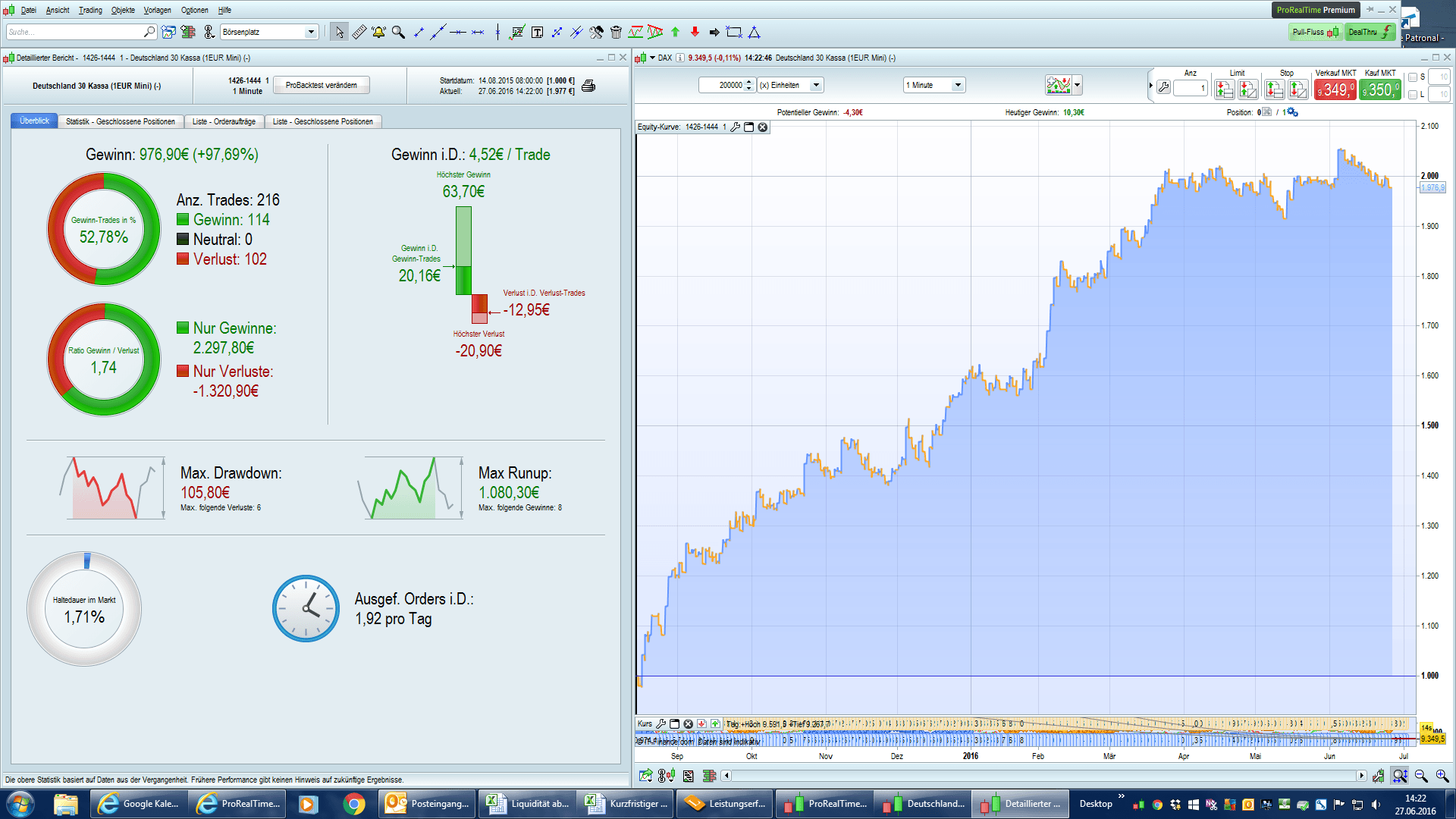 Und auf Minute stehen halt leider nicht sooo viele Daten für den Backtest bei PRT zu Verfügung.