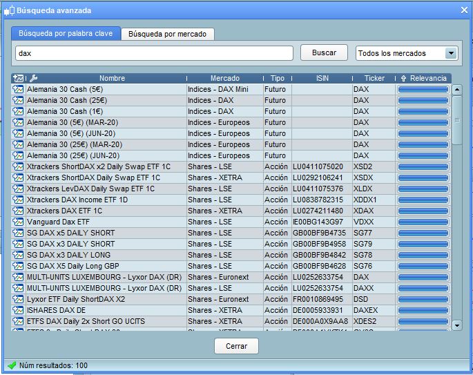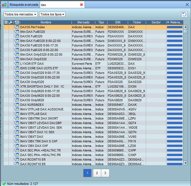 Soy cliente de IG desde hace algunos años, si cargo Prorealtime a traves de IG y hago una busqueda de activos que contengan la palabra DAX, no me aparece el elemento que he indicado en el mensaje anterior DAX30 Perf Index (ISIN DE0008469008).