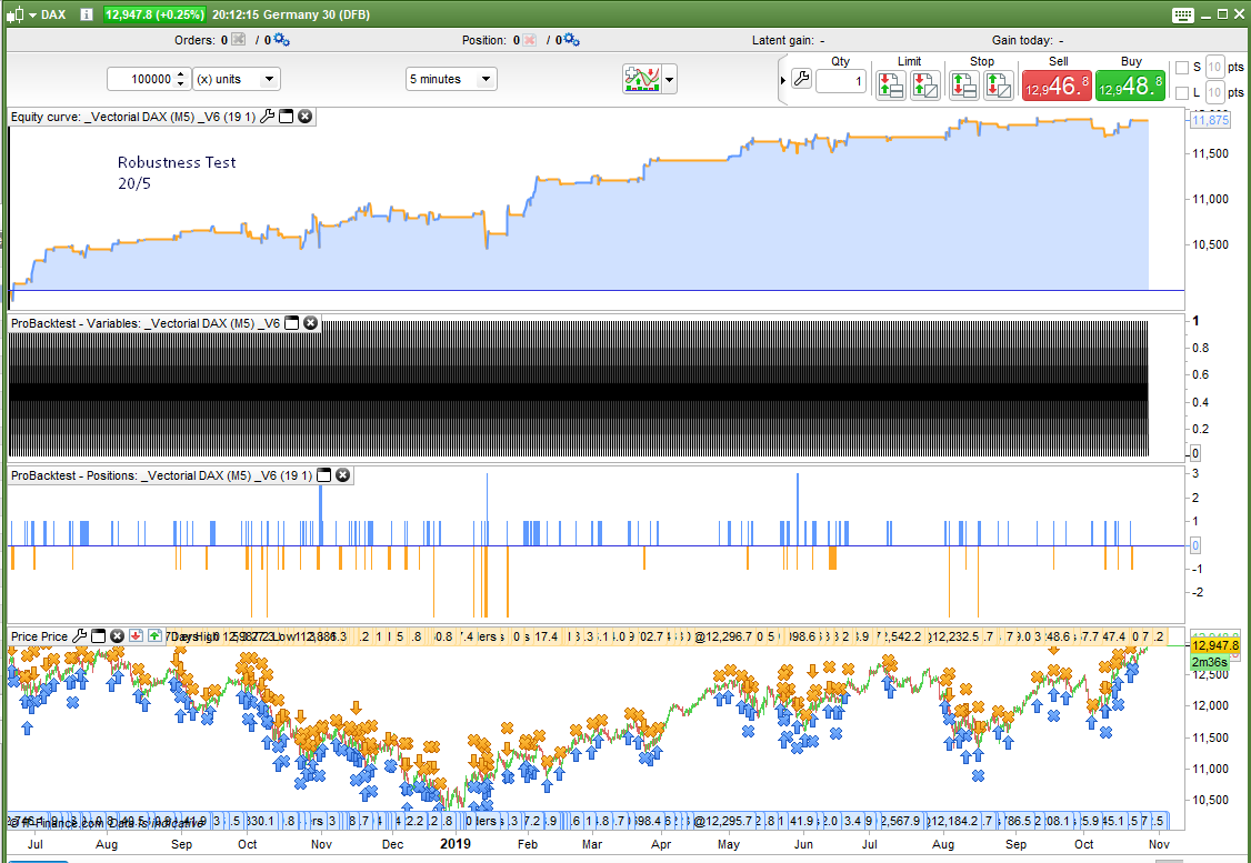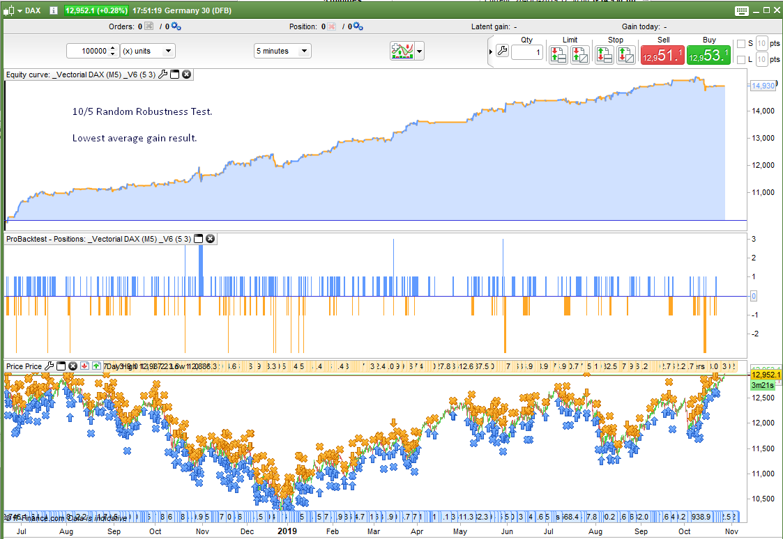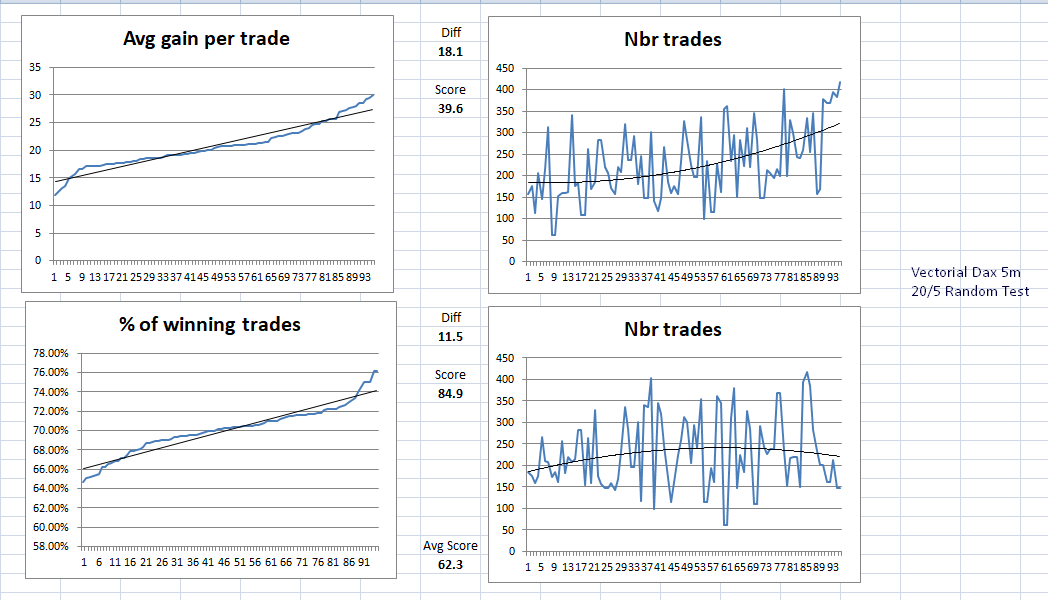 I finally managed to find some time to try to add the ‘Robustness Tester – Random’ to fifi743 ‘s Vectorial DAX M5 code. I think that I added it correctly and it turned out not to be as difficult as I first thought despite the masses of BUY and SELLSHORT instructions in the code! In reality not many of them were buys or sellshort when not reversing direction.