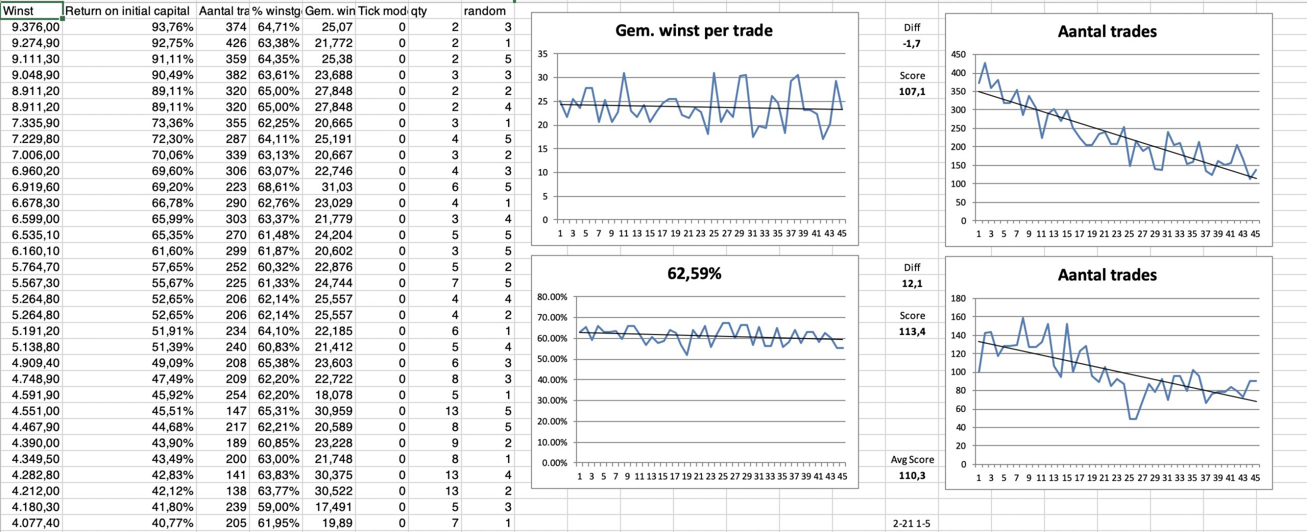 I’ve run it again and it takes about 5 to 6 minutes for the complete strategy 200k bars. It uses market orders and there are no restrictions on a new signal in the same/opposite direction. It just closes & (re)-enters. So it’s not curve-fitted I believe as I had before (5.0p). Also they way your robust tester is implemented is fairly surely correct with the example of fifi’s.