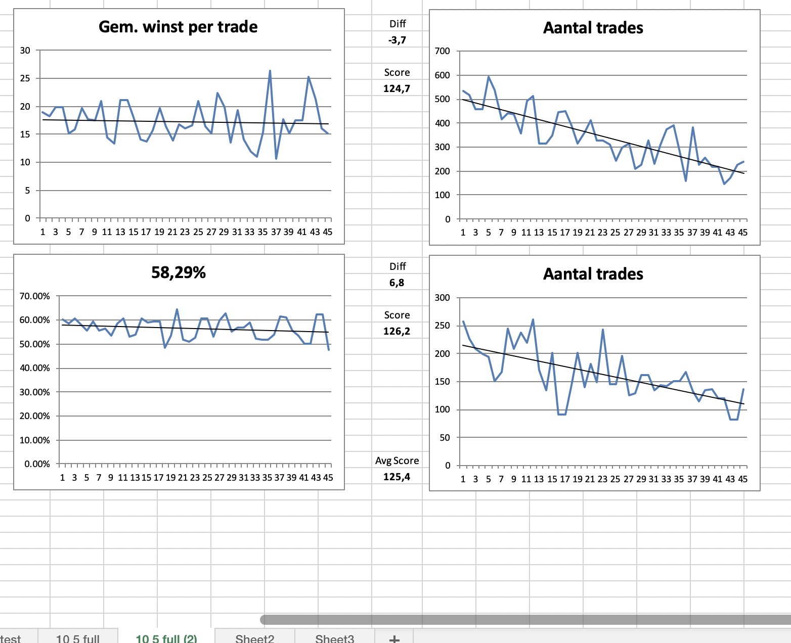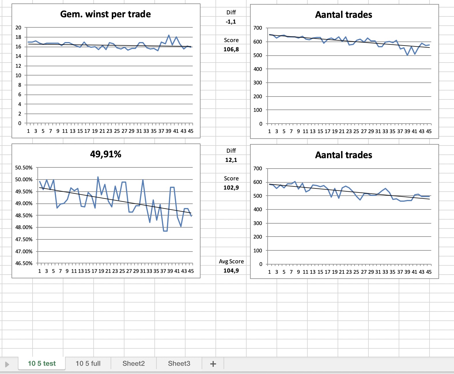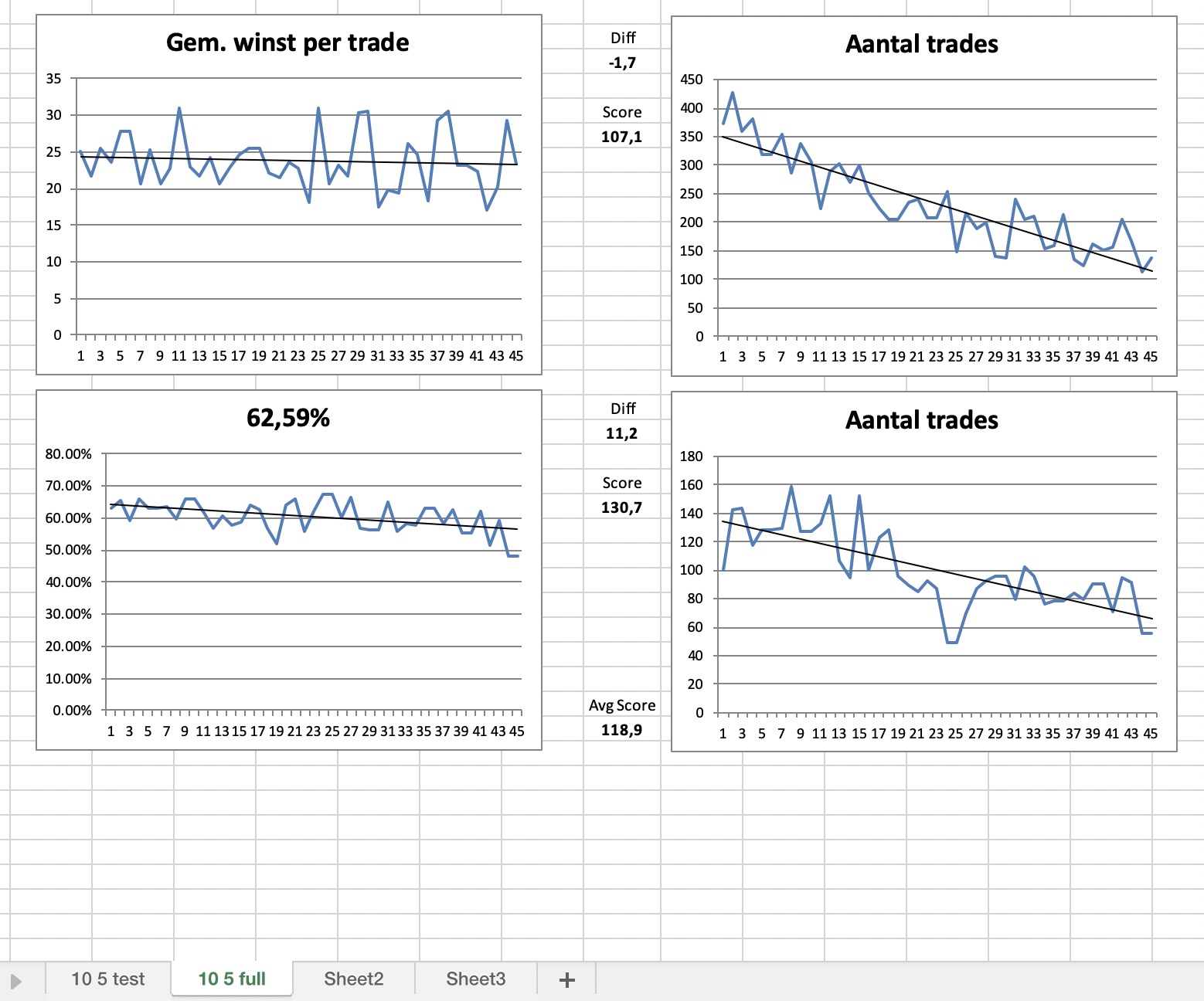 Paul – You haven’t organised your results from low to high in the optimised results window before dragging into Excel. You have to do this to get the correct charts and correct score calculations.