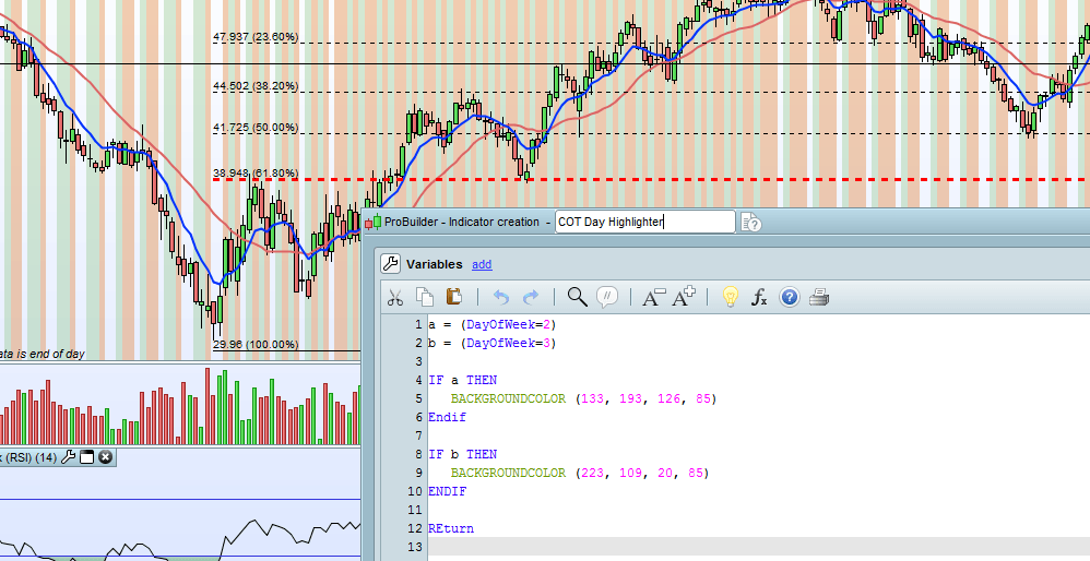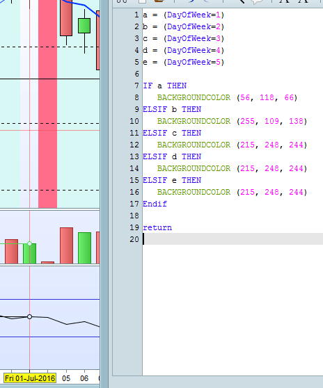 That’s great. Thanks Nicolas, how do I go about identifying days of the week as on pro real-time the trading days are displayed as dates rather than Monday Tuesday etc. ?