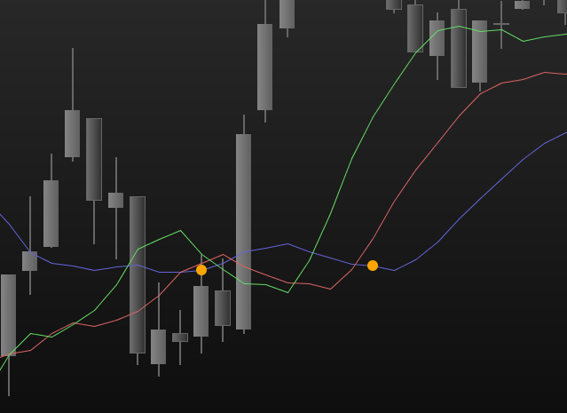 Sur l’image on voit bien un croisement des moyennes de l’alligator qui ne se fait pas sur les moyennes obtenues