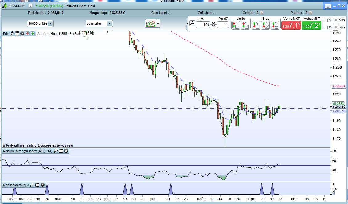 après qq jours d’activité je peux reprendre l’étude de mon petit indicateur. J’ai modifié le prgm comme tu me l’avais indiqué, et je refais le test : j’observe toujours des décalages importants et des signaux générés qui, pour moi à 1ère vue, ne correspondent pas aux conditions du programme. En fait en analysant plus finement je me rends compte qu’il apparaît: