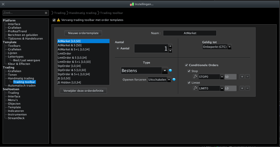 Hi, the default Limit and Stop loss for every instrument is set at 10 in Prorealtime charts. Is it possible to change these settings globally, e.g L=50 and S=25 ?