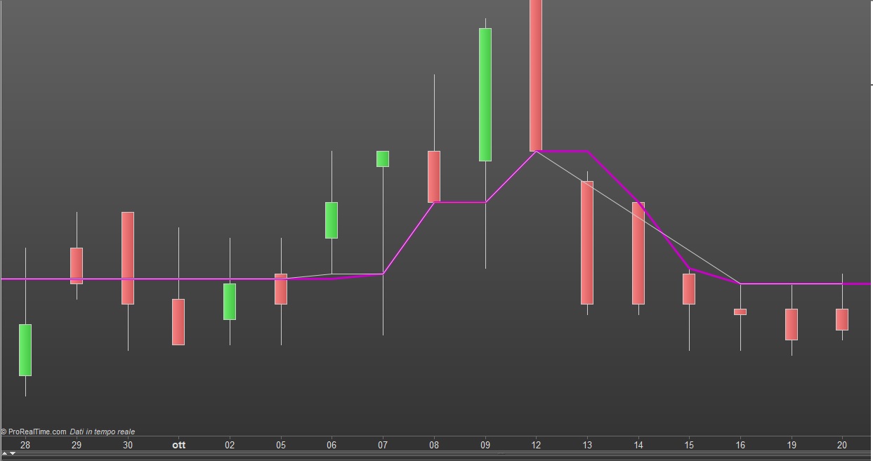 Ma sempre come da immagine allegata ho il problema che in determinate condizioni le linee dello script “originale” (la linea sottile bianca) e di quello modificato non coincidono in particolare in quei frangenti in cui il primo script crea delle rette da un punto “A” passando attraverso un tot di candele ad un punto “B” il nuovo script (che disegna la linea in “continuo”) crea delle spezzate.