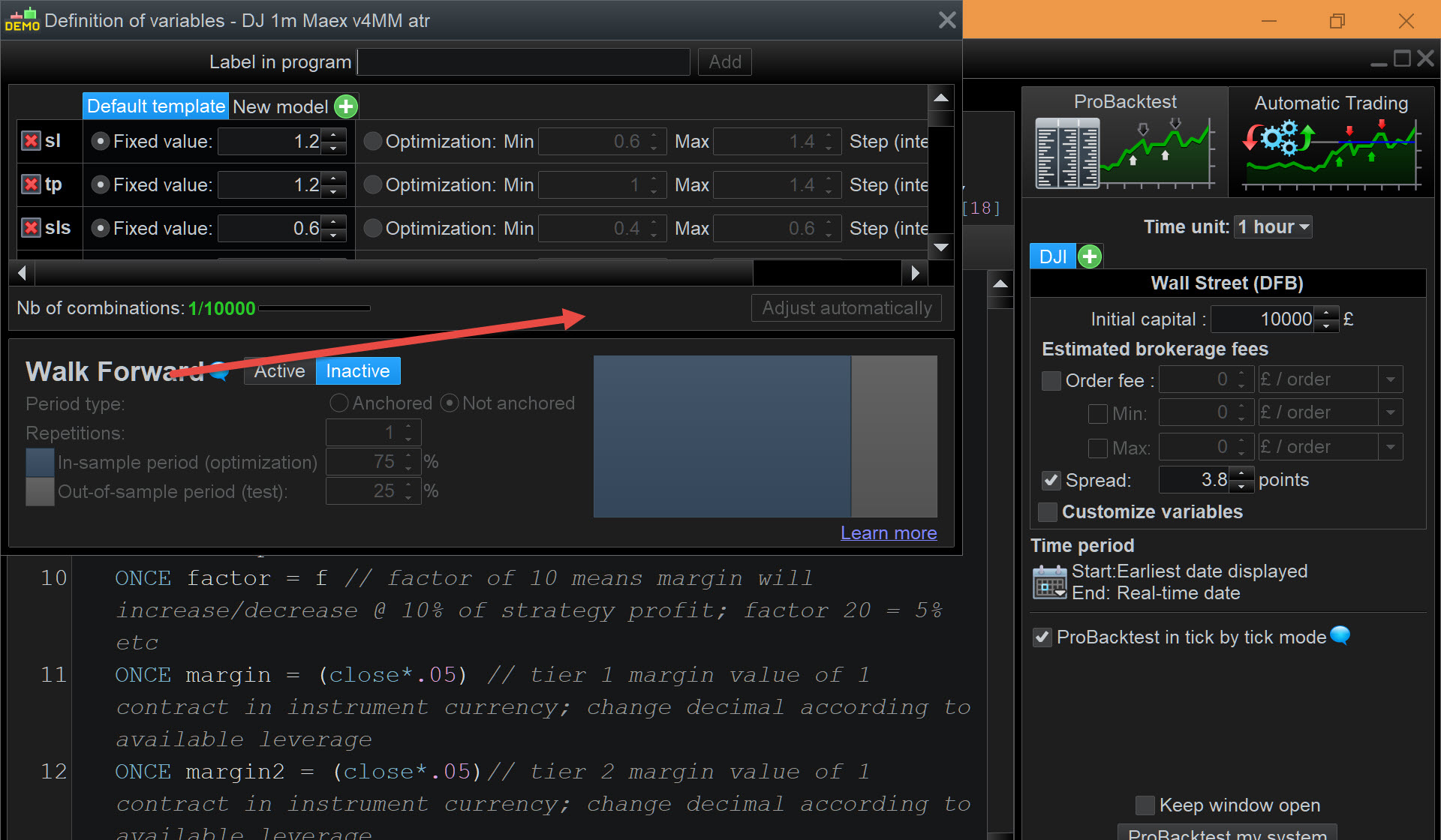 What I noticed while looking at this was, regardless where my chart is on 1 screen, when I open the Modify ProBacktest window, the editor gets centred around the middle of the screen, if saved small enough. If I then open the DoV, the top of the DoV window is aligned with the center line of screen. This leaves only half the monitor height to show the DoV window. Not going to happen with a lot of variables.