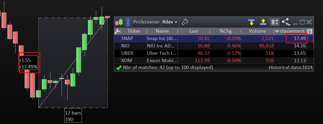 Donc comment avoir ce screener/tri qui me donnerai un résultat, croissant ou décroissant avec les petites fleches, des actions qui ont ” montées le plus” durant ces 21 derniers jours, et pas qui ont juste le plus gros écart absolu comme je me suis retrouvé avec ma tentative.