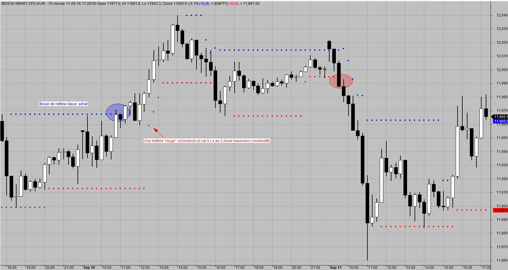 ci-dessous: une dernière condition: la “Netline” n’est visible sur le graph que si le Close précédent est < NLBL ou > LNSL