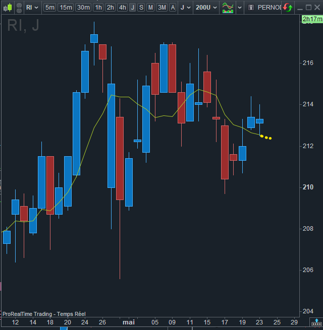 Si je prend l’exemple d’une moyenne mobile : moyenne mobile 7 en daily par exemple, afficher sur le graph en temps réel (en prolongeant la vraie mm7) la valeur qu’elle prendra en “bar+1” suivant le cours actuel.