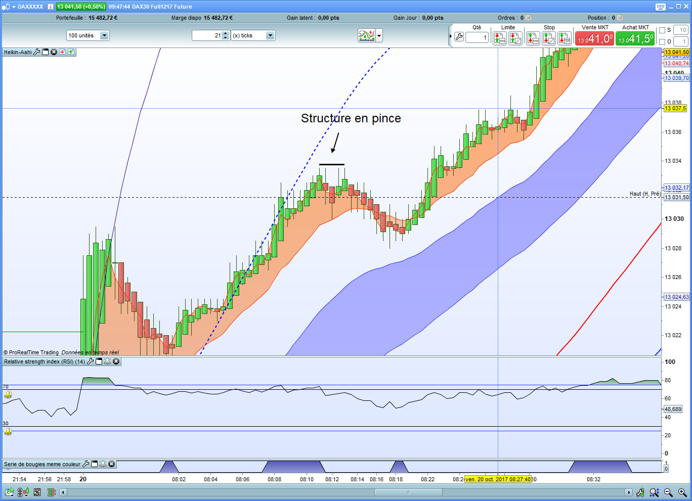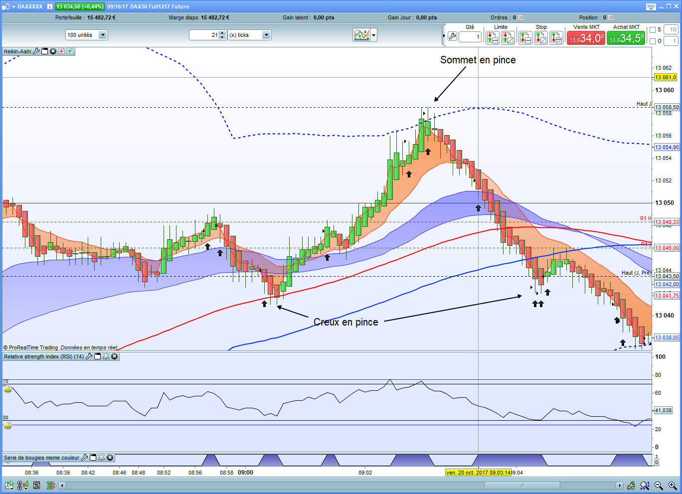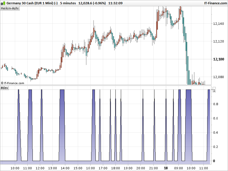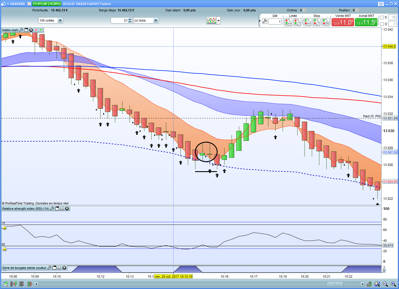 Je fais du scalping sur le DAX et je prends position seulement après un range long de bougies Heiken-Ashi de même couleur. Pour m’éviter de passer trop de temps sur le graphique, je souhaiterai une alerte lorsque une suite de X bougies Heiken-Ashi de même couleur à lieu (par exemple 8 bougies consécutives de même couleur). Idéalement, j’aimerai pouvoir facilement changer le paramètre X sans avoir à modifier le code à chaque fois.
