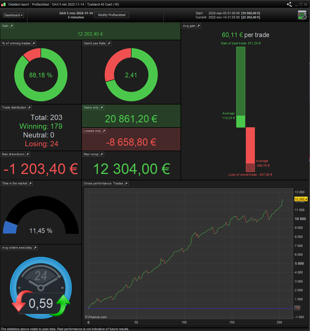 it is built and optimized on on DAX 5 min with 200k bars, might be a little over optimized over 1M bars