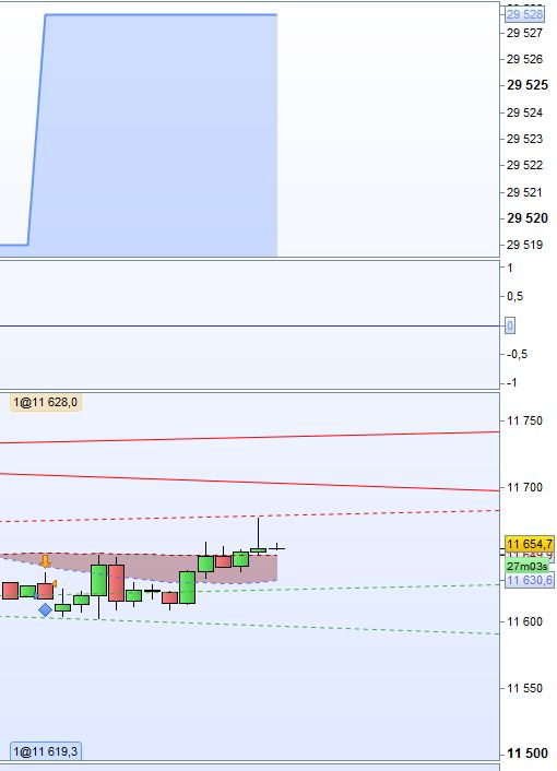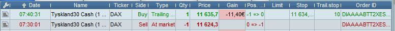 This morning the algorithm took its first position, which was a loss of 11,4 points. But when simulating (or back-testing) the algorithm now, ProOrder indicates that the trade was a profit of 8,7 points. Please see the attached screenshots.