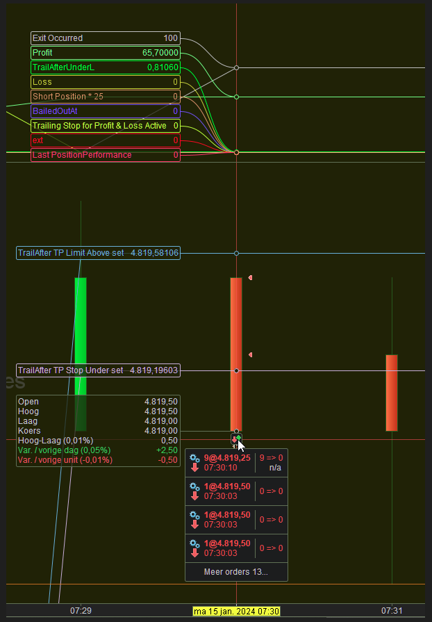 Let’s look at the 2nd pic. That shows what happened in the bar which triggered the situation. All kinds of anomalies show, which is actually PRT-IB doing bad here. Thus, the 0->0 you see several times is not correct (it makes no sense) which already causes the analysis of what happened, difficult.
