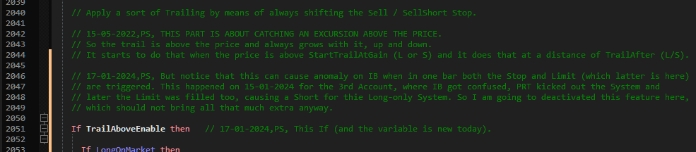 It would really be a good thing if people could take it for granted that backtesting against the very same results in Live *is* possible. If people would do that, it would be far more easy to “know” and take it for granted that any significant differences are their own fault. Regarding this, I may also show what happened to myself on the 15th of January, and how I changed the code to never let that (difference) happen again. And that is after a full year of fighting with PRT-