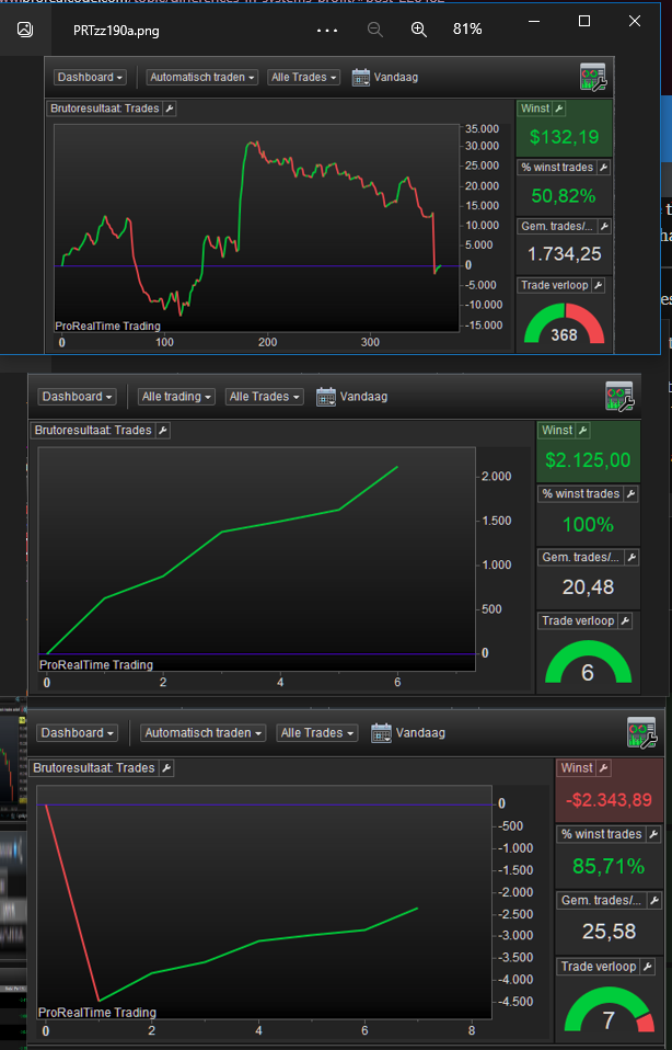 The 4th SS I promised too : this is a compilation of what the Detailed Report of my portfolio shows in the top version by default (notice the “Today” filter – which makes no sense at all). Then I change the “AutoTrading” filter to all (middle version) and then back to Autotrading (bottom). The $2125 version is the correct one but it shows under the All filter. The number of trades is wrong and will resemble from what the 3rd SS shows. It really is one (half) trade for today only.