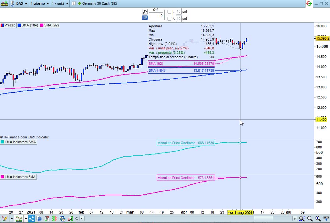 Ora..stento a capire come sia possibile una variazione del genere cambiando soltanto il tipo di MM in questione, da semplice a esponenziale…qui sembra sia cambiato anche il periodo delle MM stesse….e, ironia della sorte, la MM esponenziale sembra più “soft” e lenta della semplice (oltre ad essere evidente il periodo di MM decisamente differente…)