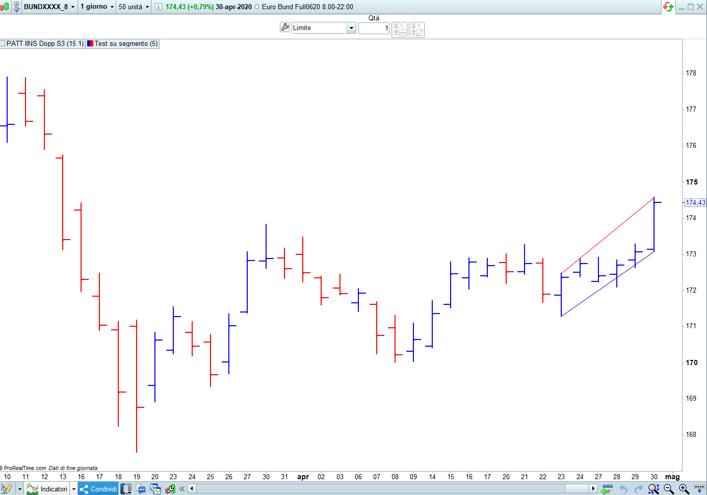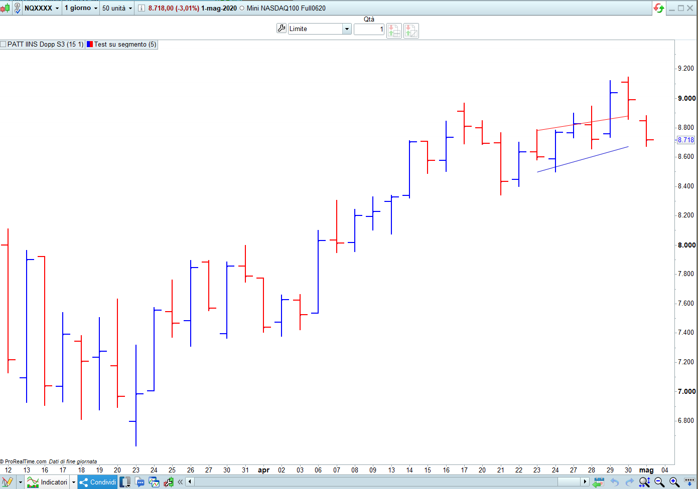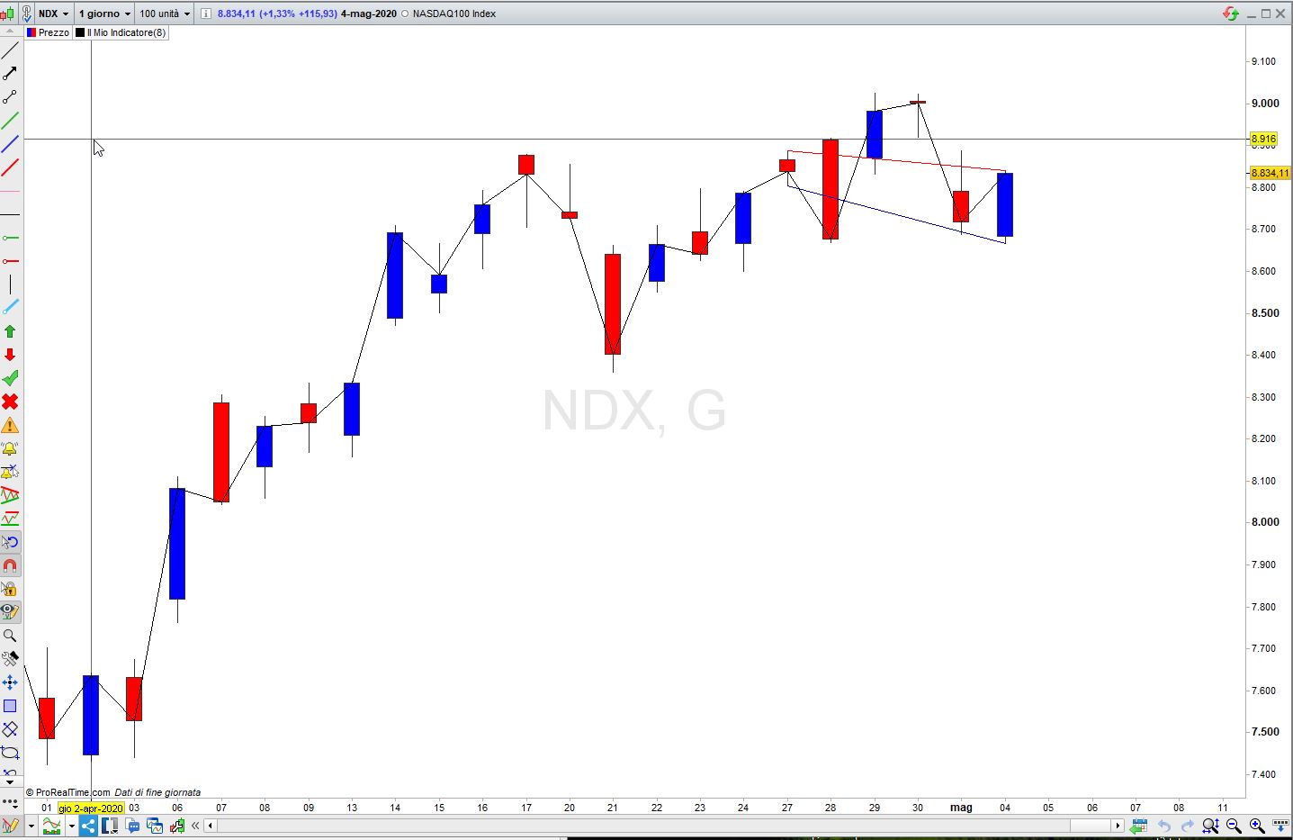 Rilevo che su dax e tutti i future europei , e indici americani funziona correttamente , ossia traccia un segmato tra il minimo di 6 giorni indietro e il minimo dell’ ultima barra , analogamente per il massimo. Per i future Usa NQ , ES , Cl , GC etc , questo non avviene , ossia il segmento parte da barra -7 a barra-1 ( invece che da barra-6 a barra ultima ) come mai ? c”é qualche settaggio da fare per gli orari ?