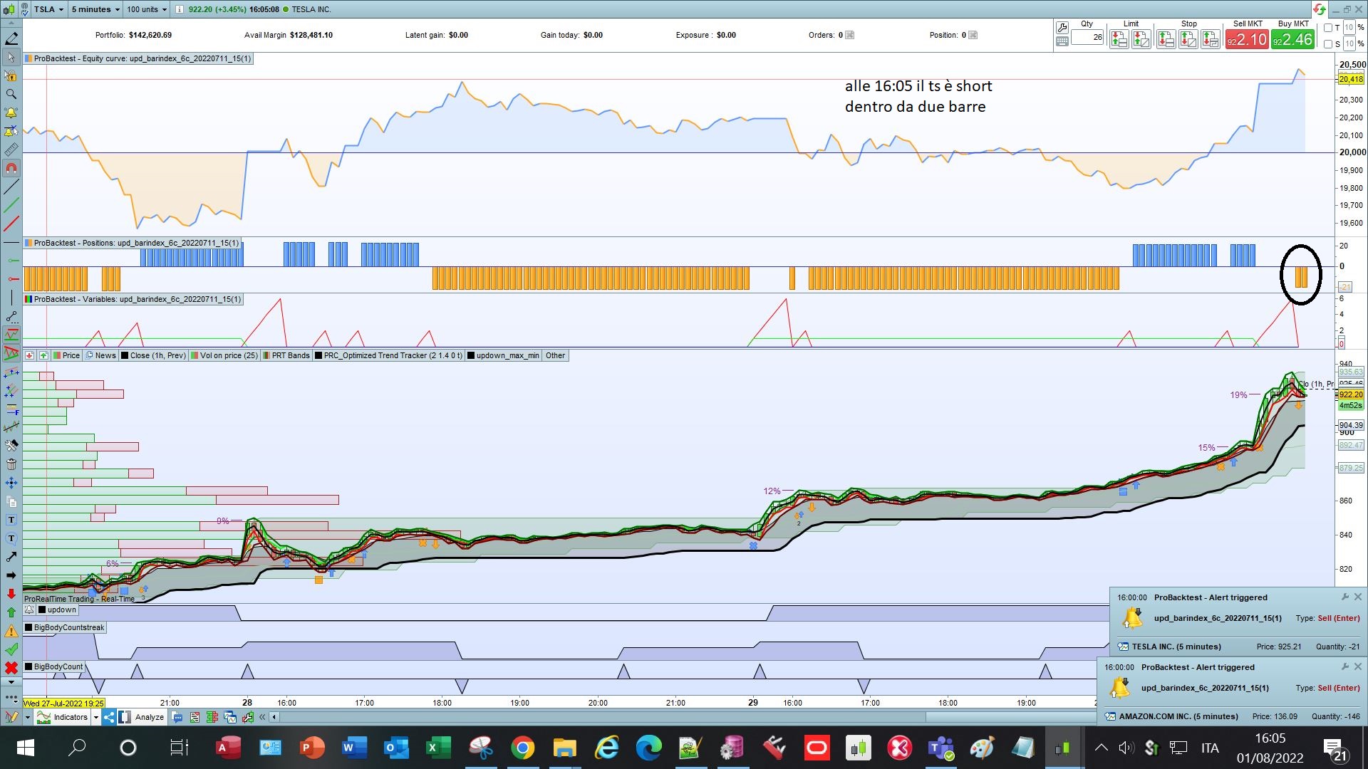 L’ho testato sul DAX, sempre a 5 minuti, e mi sembra funzioni, anche perché non ho gli allarmi, quindi non capisco bene cosa tu intenda. Tieni presente che gli allarmi puoi averli programmati a candela in formazione, mentre le strategie vengono sempre eseguite alla chiusura (a meno che non si utilizzi il Multi Time Frame scendendo su un TF inferiore.