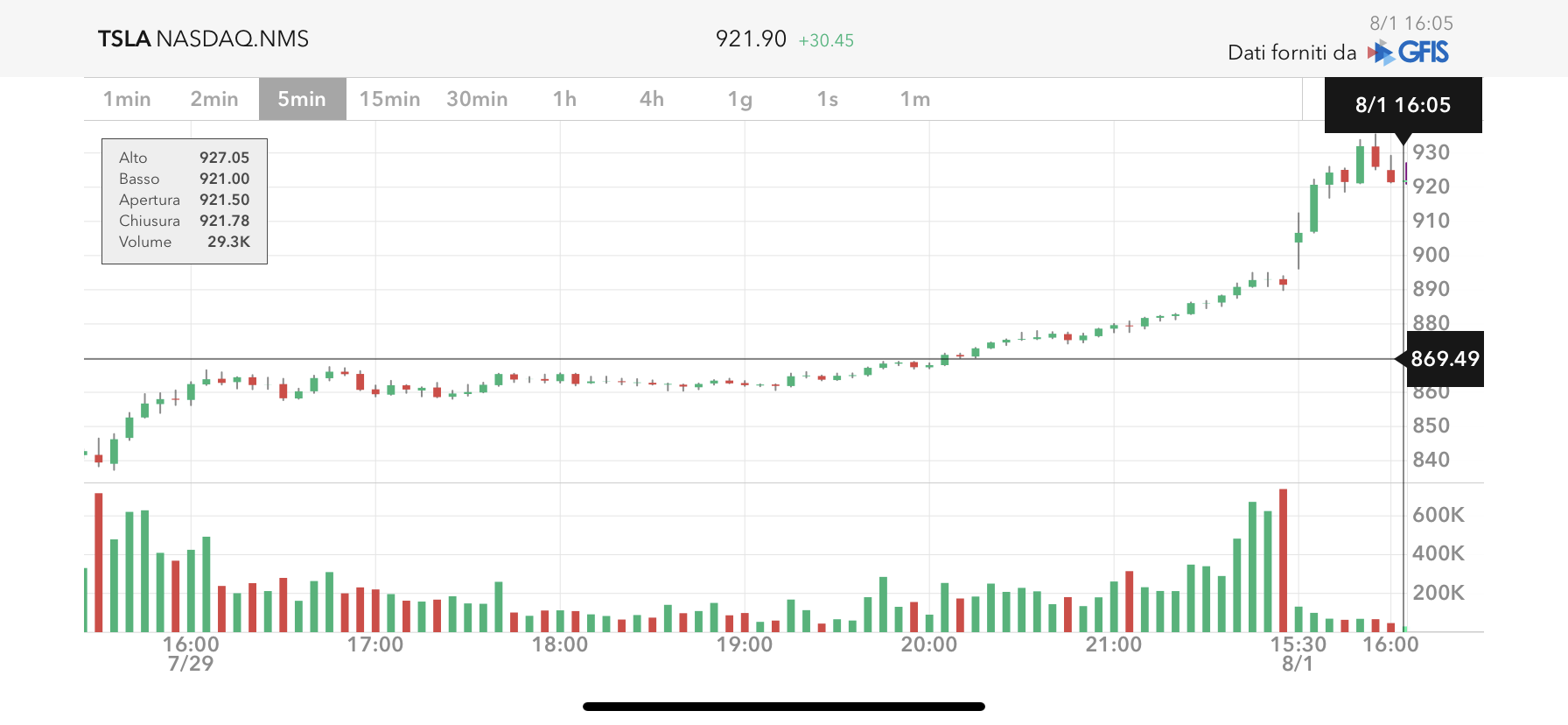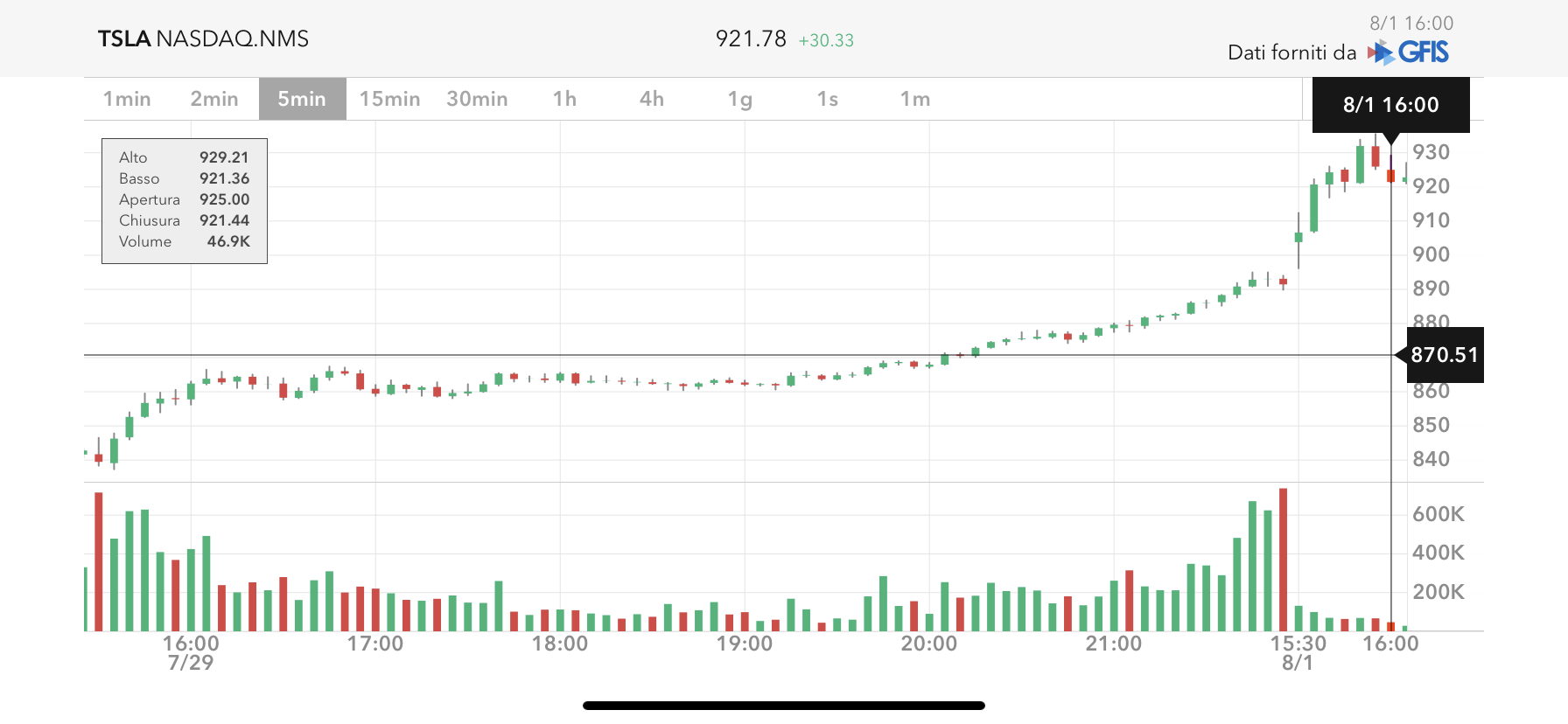 Alle 16:05 l’open dice 921.50 (come anche la chiusura della barra precedente , quindi escludiamo subito un fatto di open / close)
