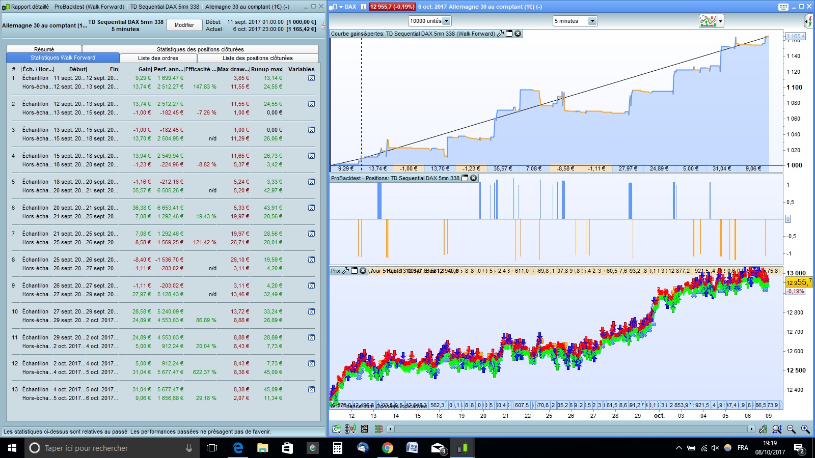 voici les résultats de mes tests “WalkForward” sur le DAX: