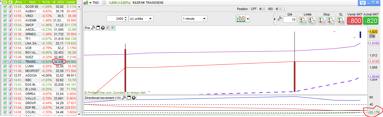 A partir du moment ou l’adx est supérieur à 23, il faut qu’il continue a augmenter de minimum 1 point par minute pour rester dans la liste du screener .