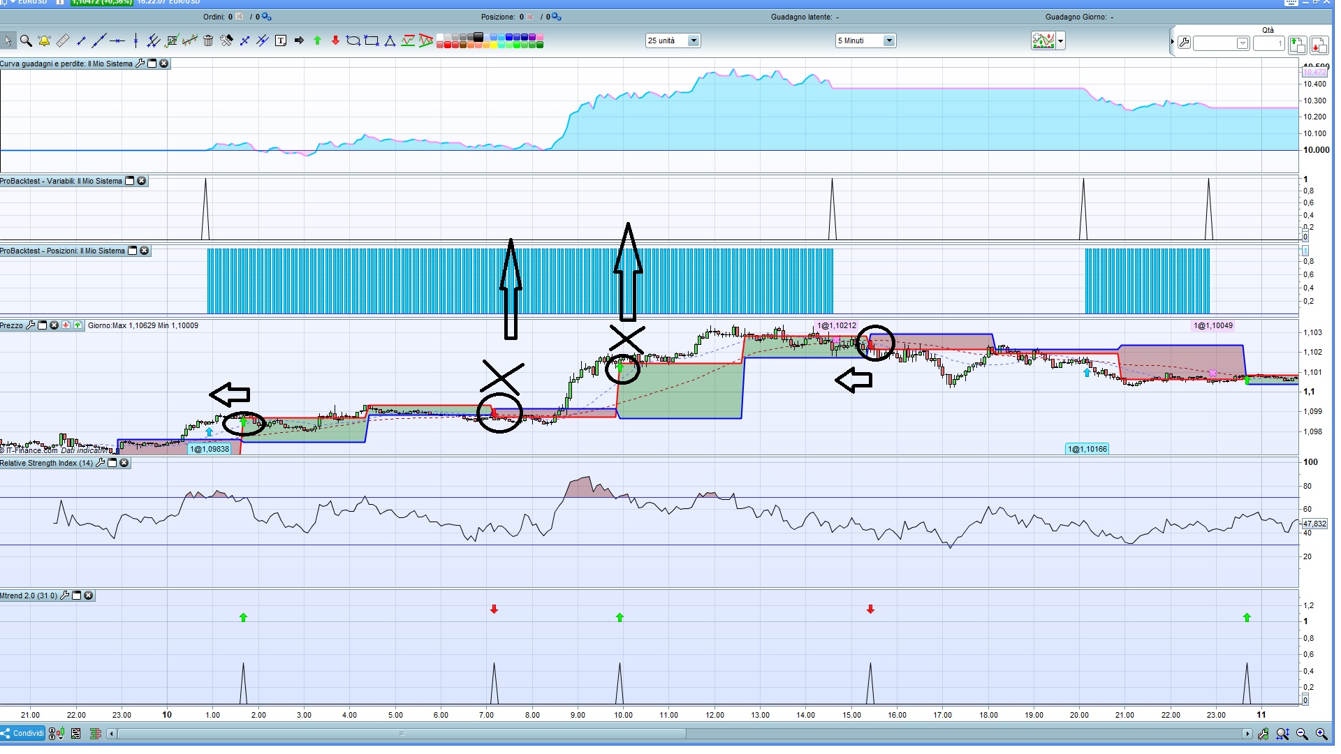Grazie Roberto del pronto feedback. Allego una schermata spero più chiara e i due minicodici in questione; uno è l’indicatore e l’altro la strategia.