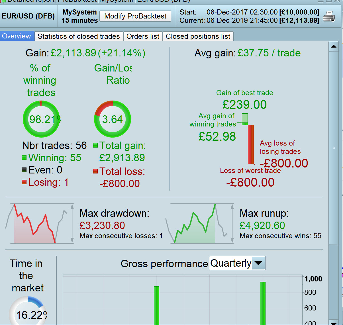 I didn’t Accumulate Orders (position size = 1) so only £58 profit, but 2 out of 2 in profit is a good start.