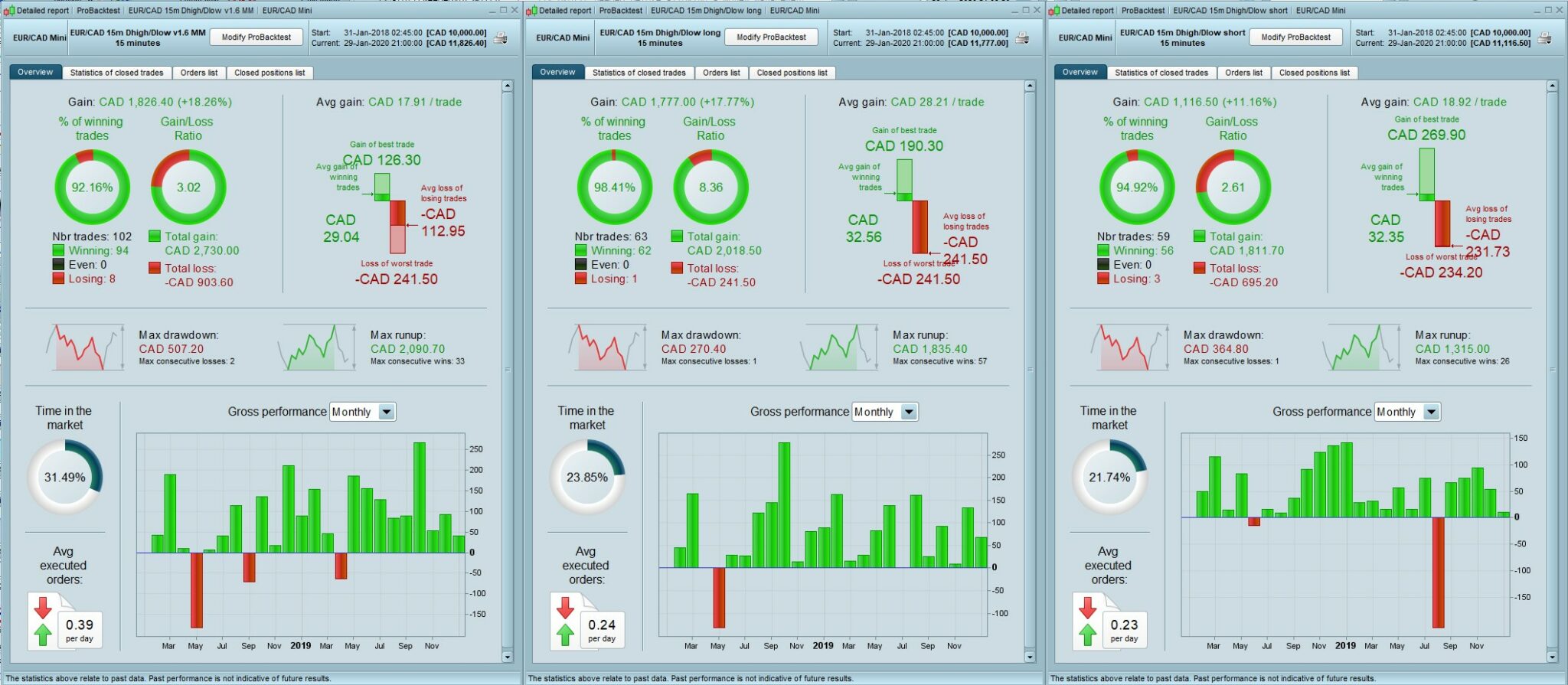 Left hand image is the combined strategy, based on Paul’s EURCAD-DhighDlow-v1p position size =1