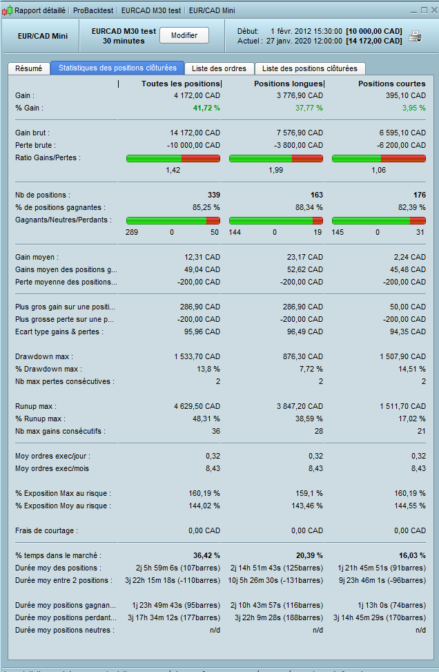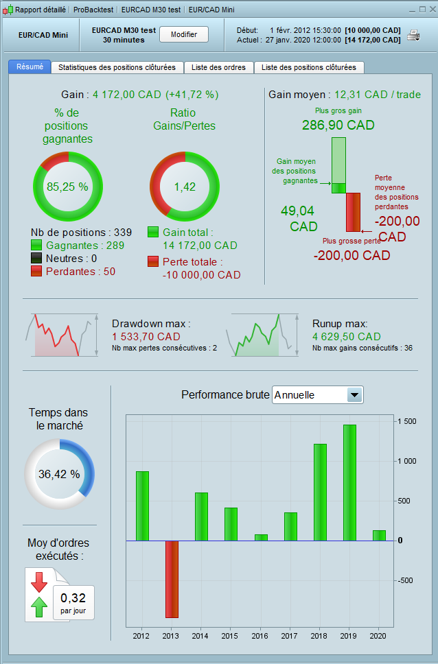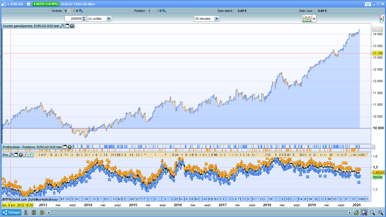 Hi, i’ve turned partial closure off and slightly optimized for EURCAD and M30. Too good to be true, but i share it (running in demo mode from this morning). Indeed take care of drawdown… :