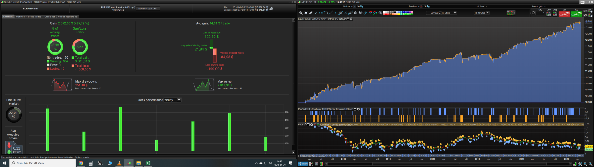 I have modified the “EURUSD-DhighDlow-v1p” version and backtested it on 15min TF with static positionsize 1 (EURUSD mini-contract).