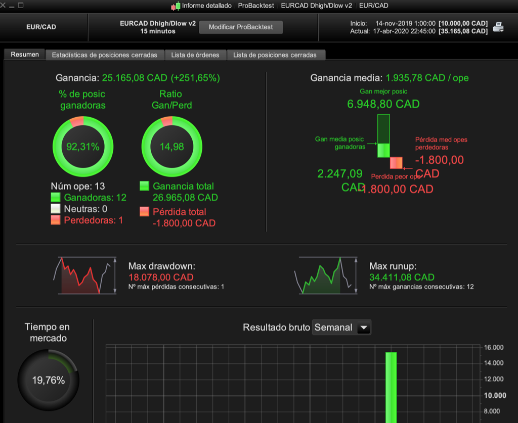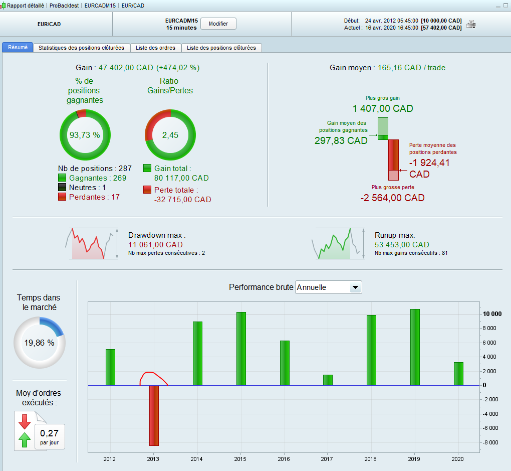On the other strategy EurCad 15′ (the V2), I got a crazy +250% with a 92% winning rate. But I saw that, unlike EurUsd and EurCad_v3 where just 1 contract is bought, the volume is much higher buying/selling 4 to 12 contracts each time. Is there no problem with the margin?