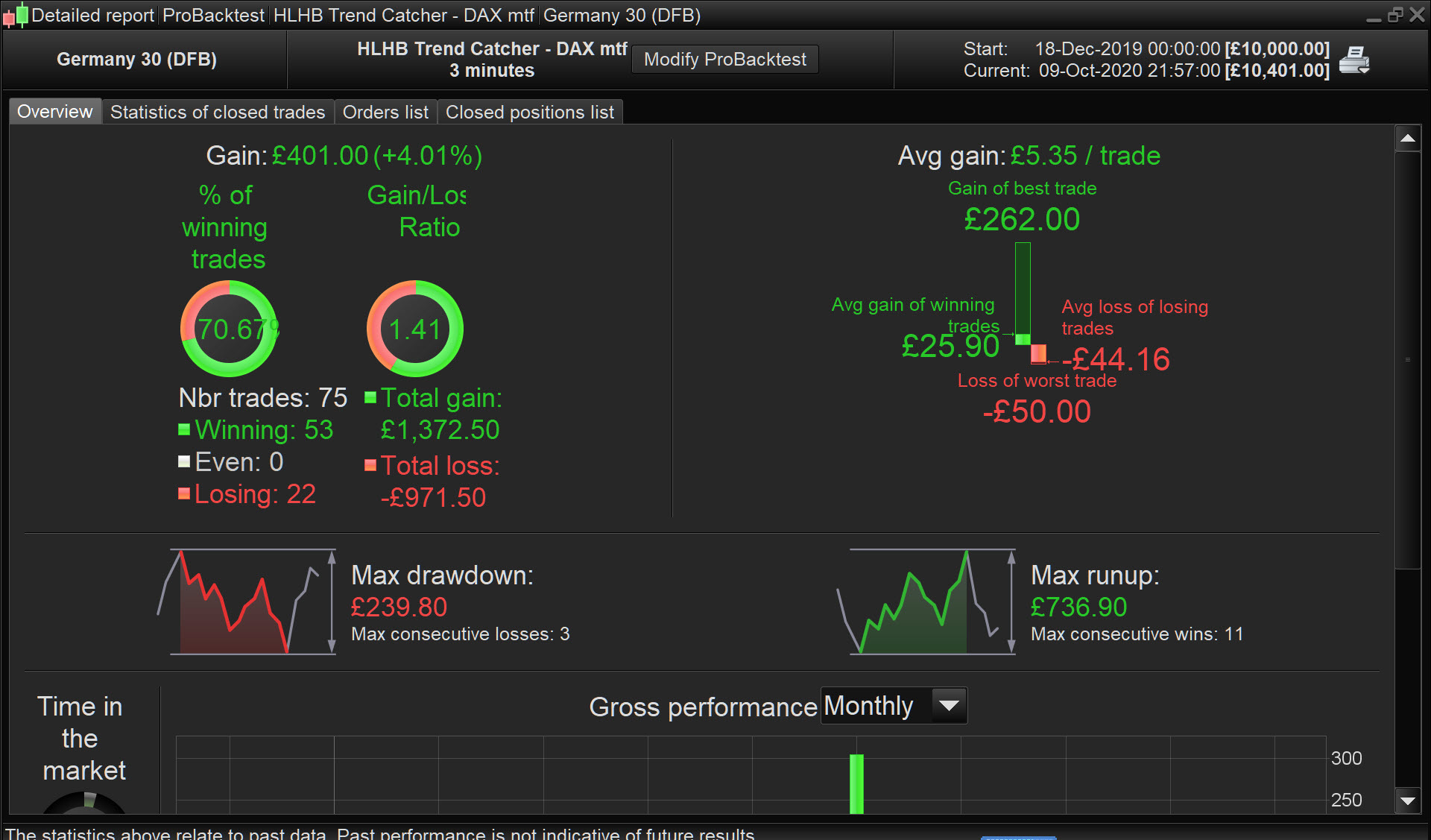 The file is dated Oct 19 and so results attached are OOS (from Jan 20) Spread = 4