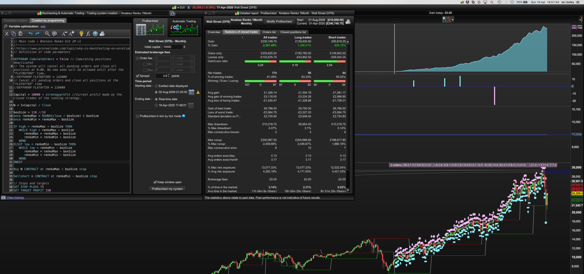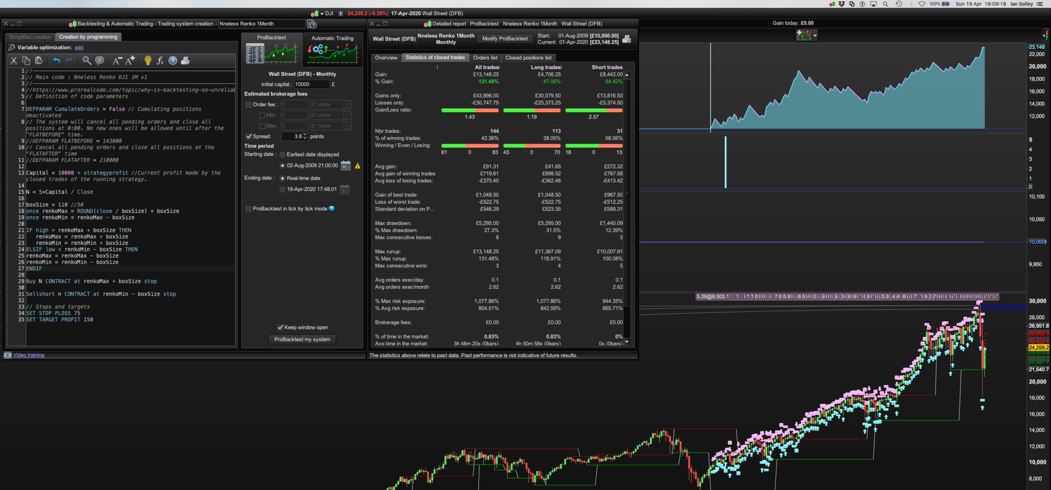I assumed 1M meant minute but it performed poorly so I stuck it on the 1 Month Dow with very impressive results: Pls see monthly images of with and without “Wend” for my two favourites the Dow and the £/$, with large 3.8 spread for realistic market conditions: