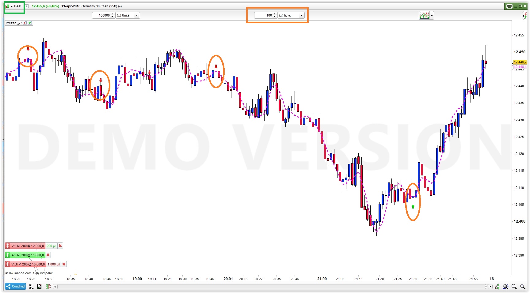 Volevo creare indicatore che (grafico a 100 tick) nel caso del verificarsi delle condizioni A e B mi disegnasse sul grafico una freccia per il long o per lo short. Ma non mi disegna nulla. Mi potete aiutare ? Grazie