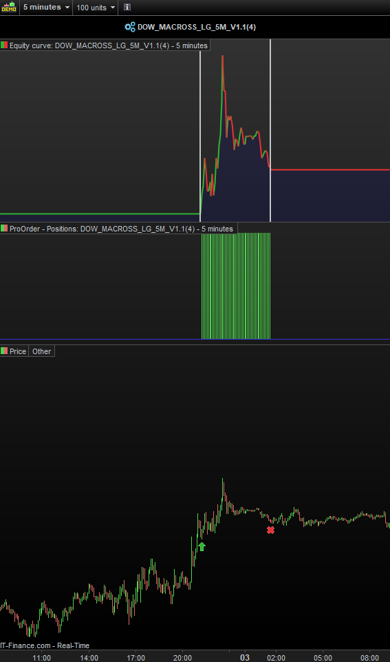 This modified Strategy #2 entered a Long trade, Dax 5€ 5min-TF, with no errors reported: