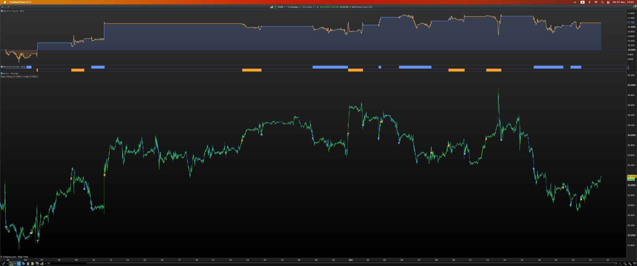 When I backtest your system “Bolly” on a time frame of 5 minutes then there are no problems…