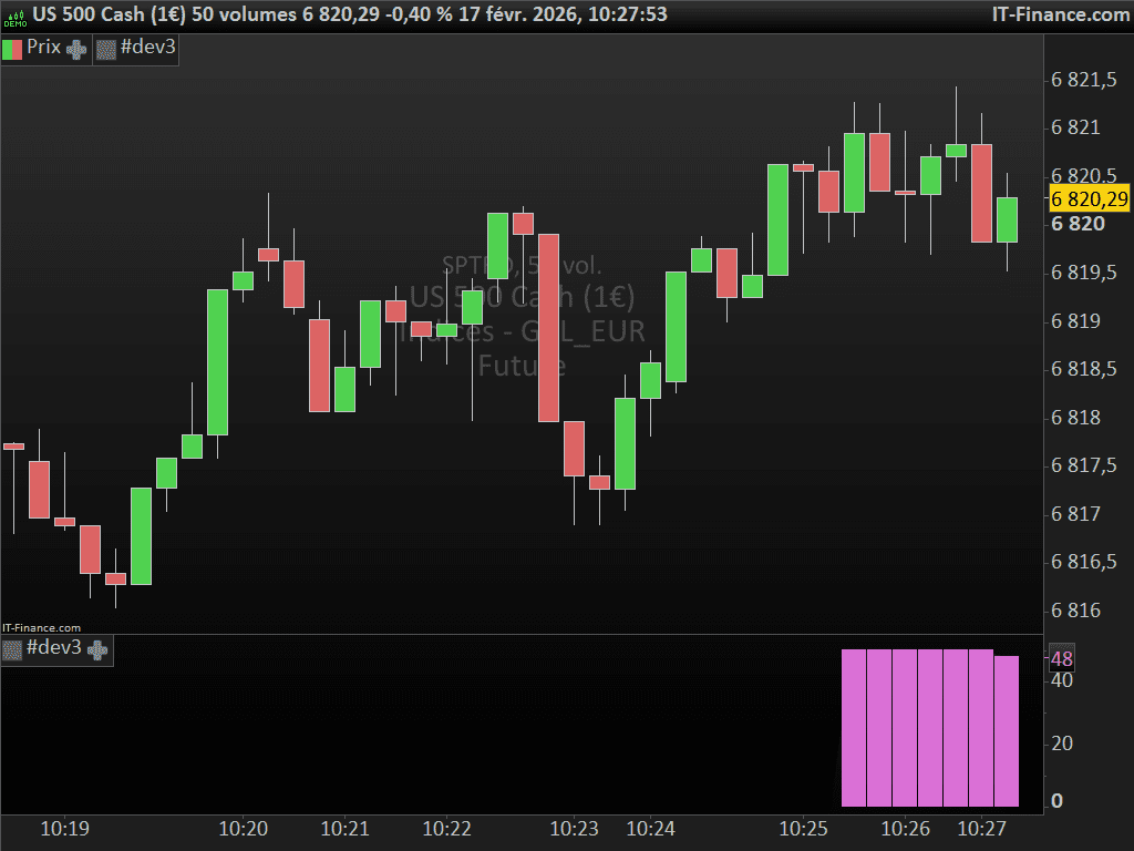 Below is the code that indicates the amount of volume in the candle; here is an example with a chart in 50-volumes per candlestick.