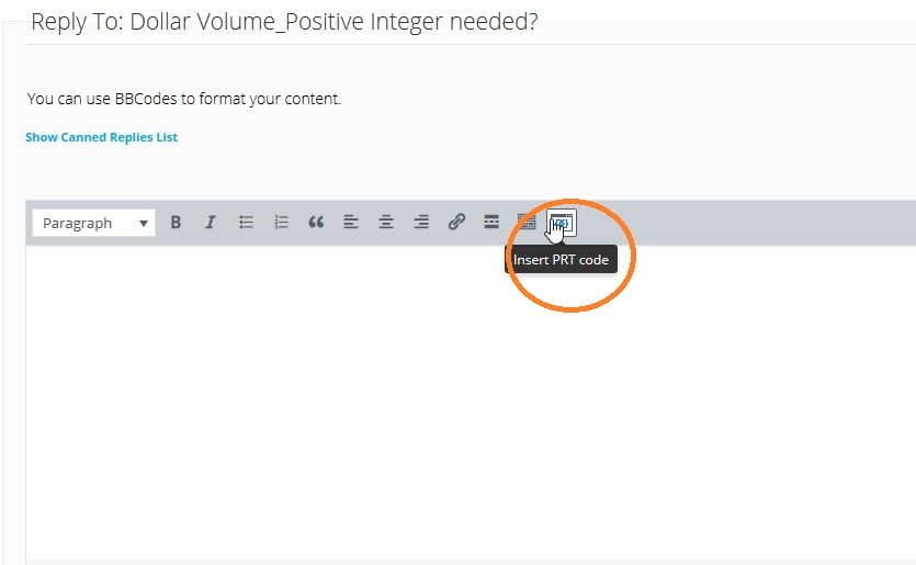 I am not sure of how to modify a post. The rules indicate that I should Always use the ‘Insert PRT Code’ button when putting code in your posts. Please let me know if I have done that. If not, please advise as to where I should find the ‘Insert PRT Code’ button. Thank you again.