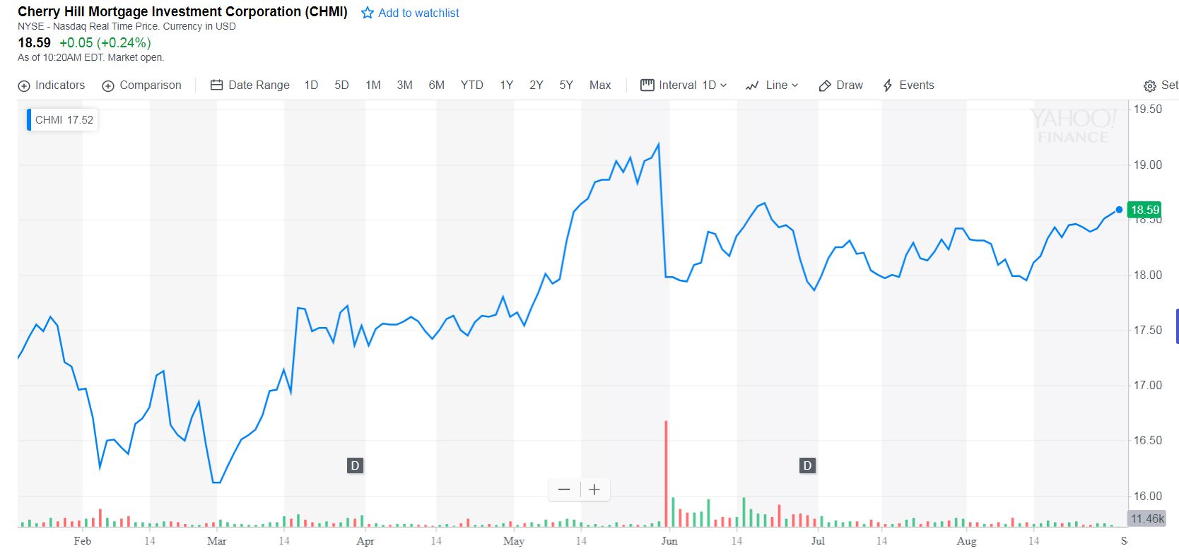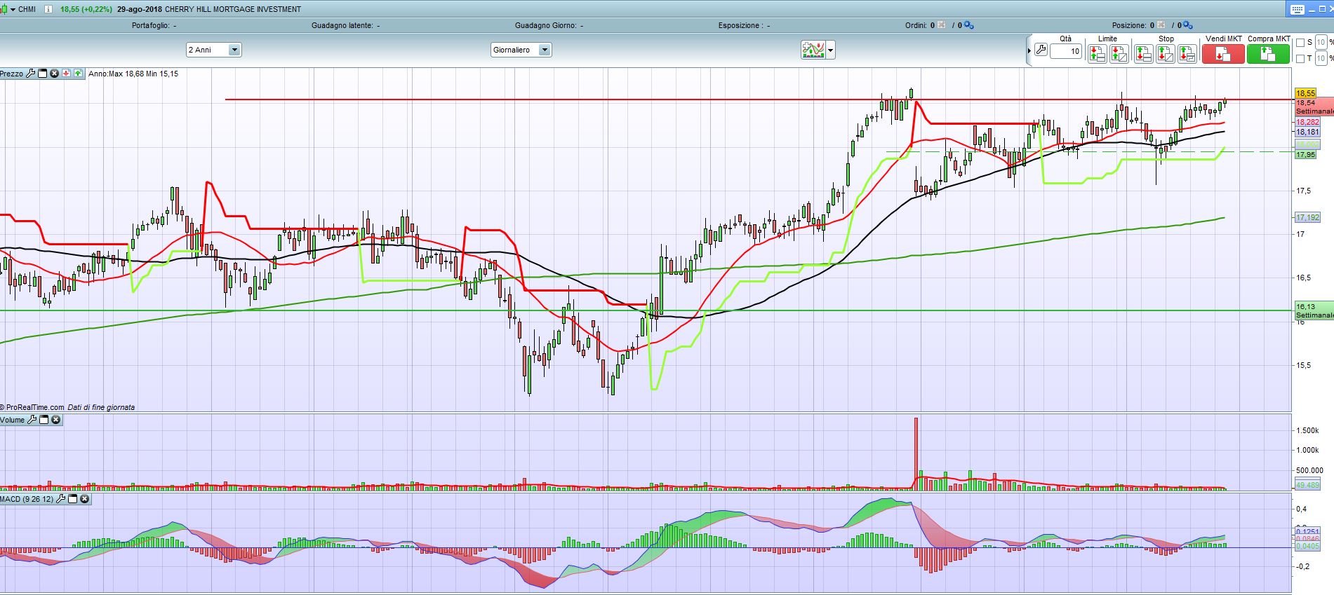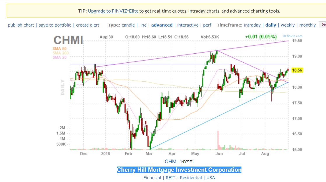 Ad es. il ticker CHMI (Cherry Hill Mortgage Investment Corporation) a fine maggio 2018 su Finviz e Yahoo ha una serie di valori che sono tutti giornalmente sopra i 19$, mentre il vs. grafico al 30/05 (valore più alto) arriva al massimo a 18.68. come mai? Ovviamente così cambiano massimi minimi supporti resistenze ecc.