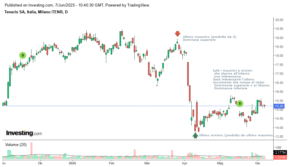 - D diventa la nuova DOMINANCE perché è il nuovo punto ALTO dopo C, ma cosa significa quando scrivi “D = nuova dominance che sostituisce la precedente (B) perché rompe (C)“? è ovvio che D rompa C, in quanto D è un massimo mentre C era un minimo!?