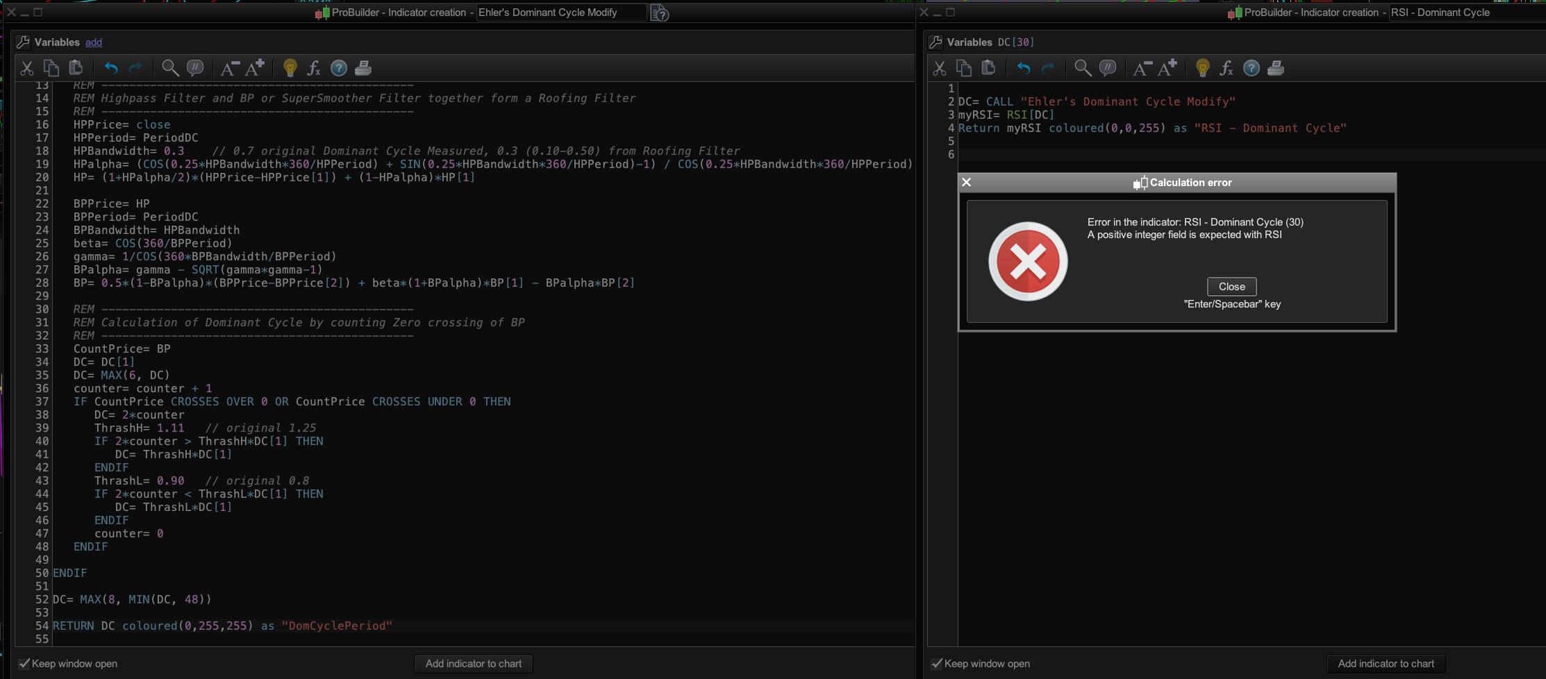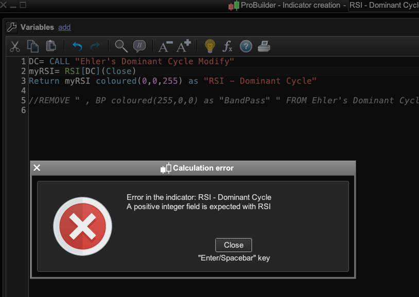 To get the Adaptive RSI to work I have to strip out Return BP part of the code from your Dominant Cycle Indicator to get the Adaptive RSI to work?