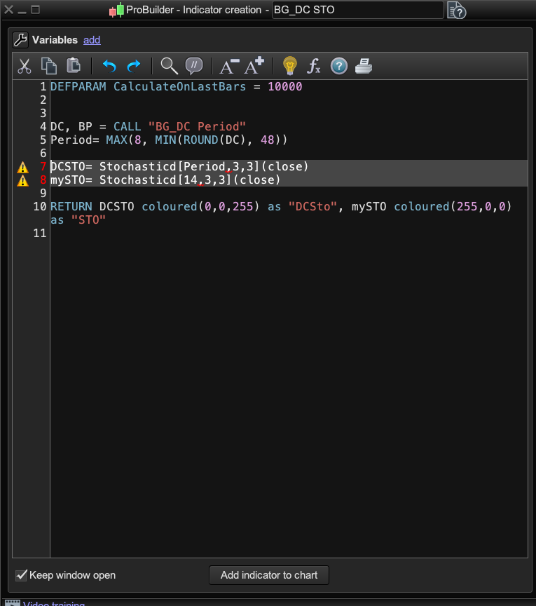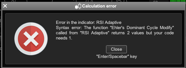 Thanks for the code, I get an error that your indicator returns two function but my new RSI indicator needs one? Pls see screenshot. I’ve tried adding [DC] to the the end of line 2 in my RSI and also the variations of values from you line 6.