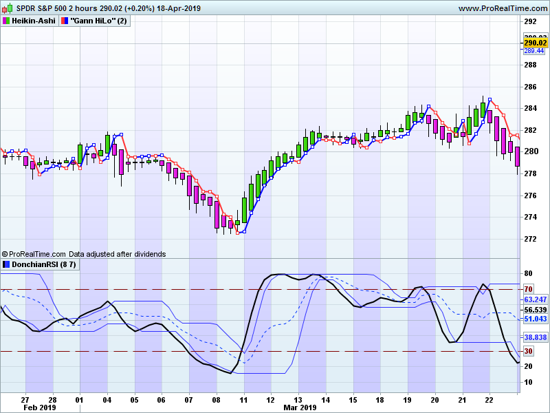 I like this indicator. Thanks for posting it. I adapted it to allow changes to the Donchian period and the RSI period.