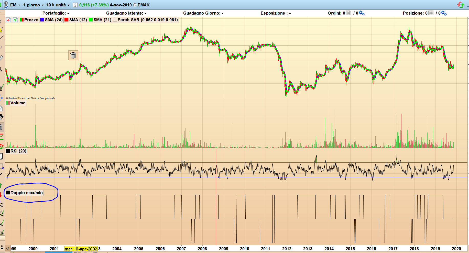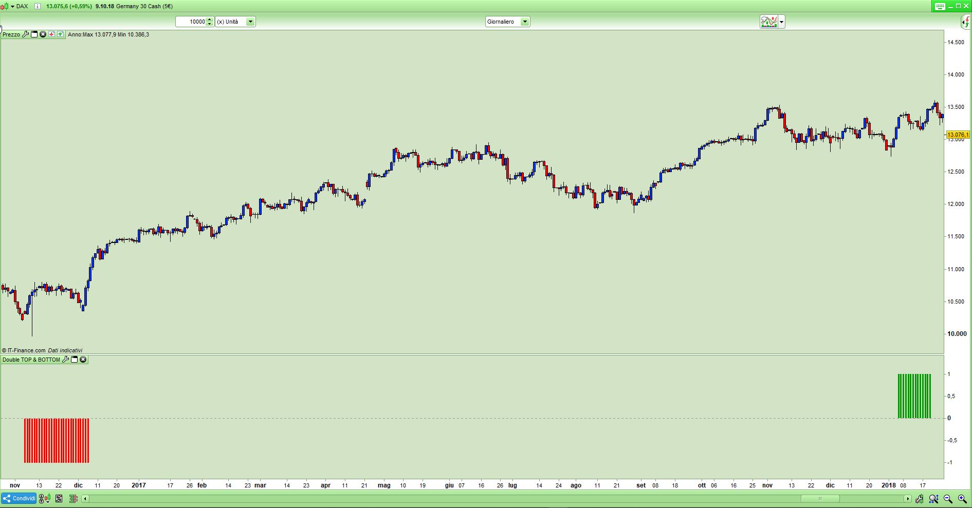 Ciao, stavo giusto cercando se fosse possibile avere un Proscreener in grado di evidenziare eventuali doppi minimi o massimi. Cercando su questo forum, ho visto questa pagina e cercato di capire qualcosa all’indirizzo https://www.prorealcode.com/prorealtime-market-screeners/double-top-double-bottom-screener/, sopra elencata.